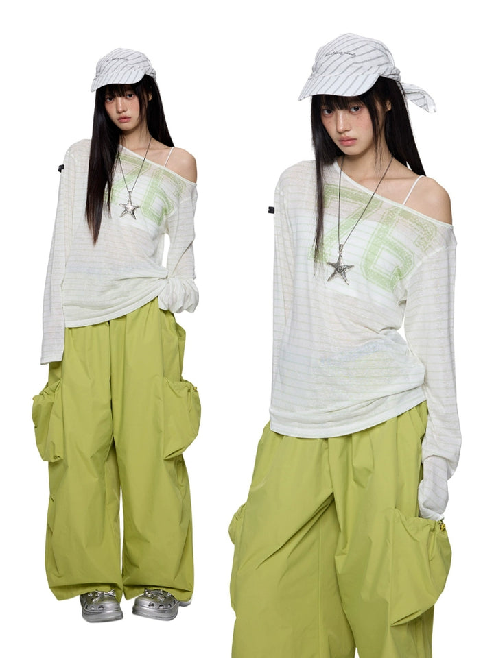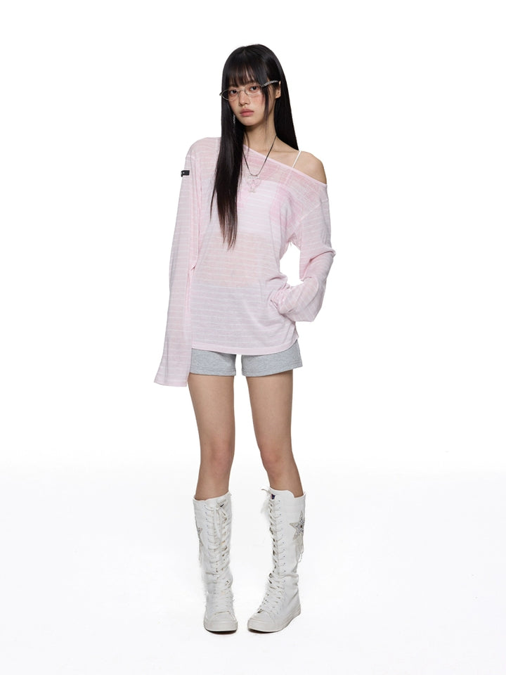 Off-Shoulder Long Sleeve Loose Turtleneck