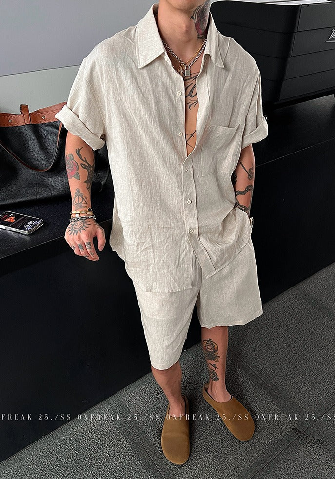 Linen Short Sleeve Shirt and Shorts