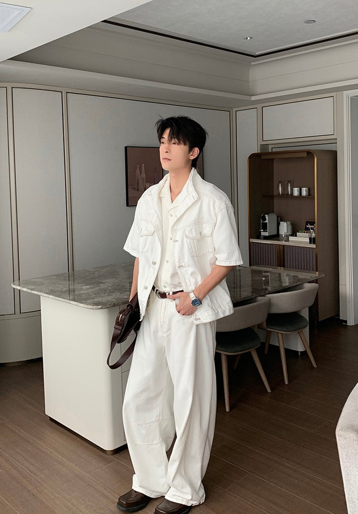 | 183 cm / 6'0" | 62 kg / 137 lbs | Top: XL; Pants: L |