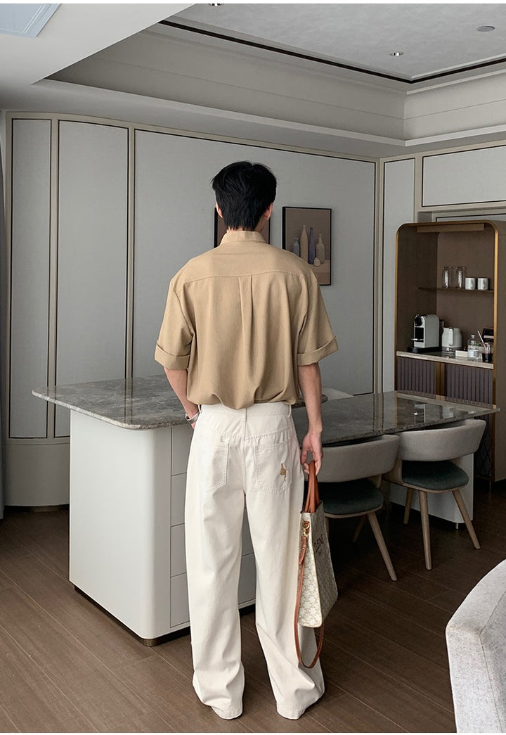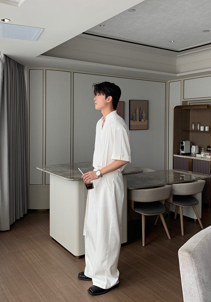 Stand-up Collar V-Neck Polo Shirt