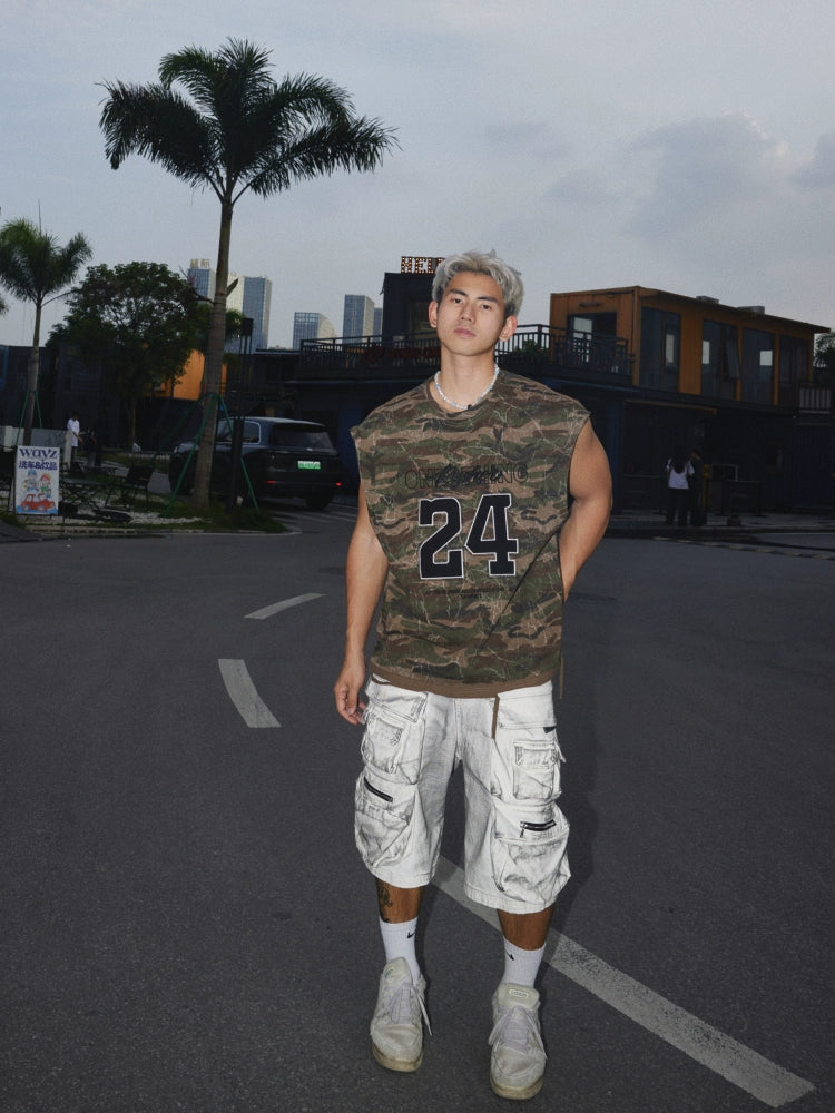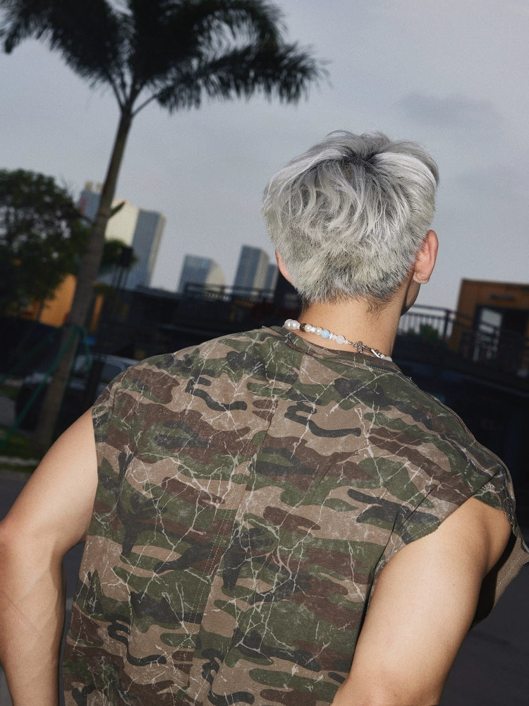 Camouflage Round Neck Sleeveless Top