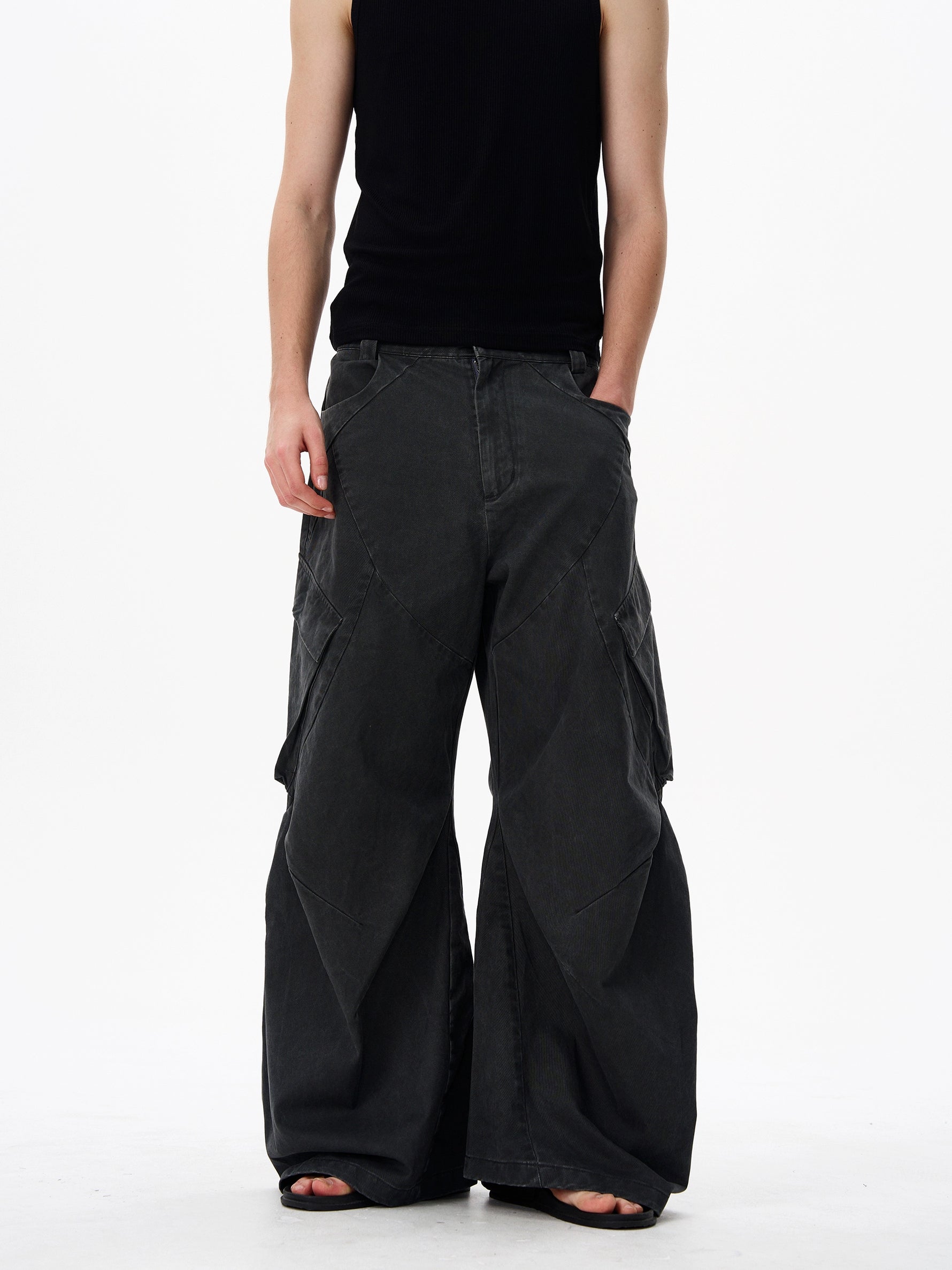 Deconstructed Wide Leg Cargo Pants