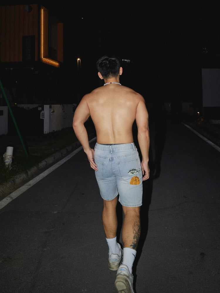 Retro Washed Loose Fit Denim Shorts