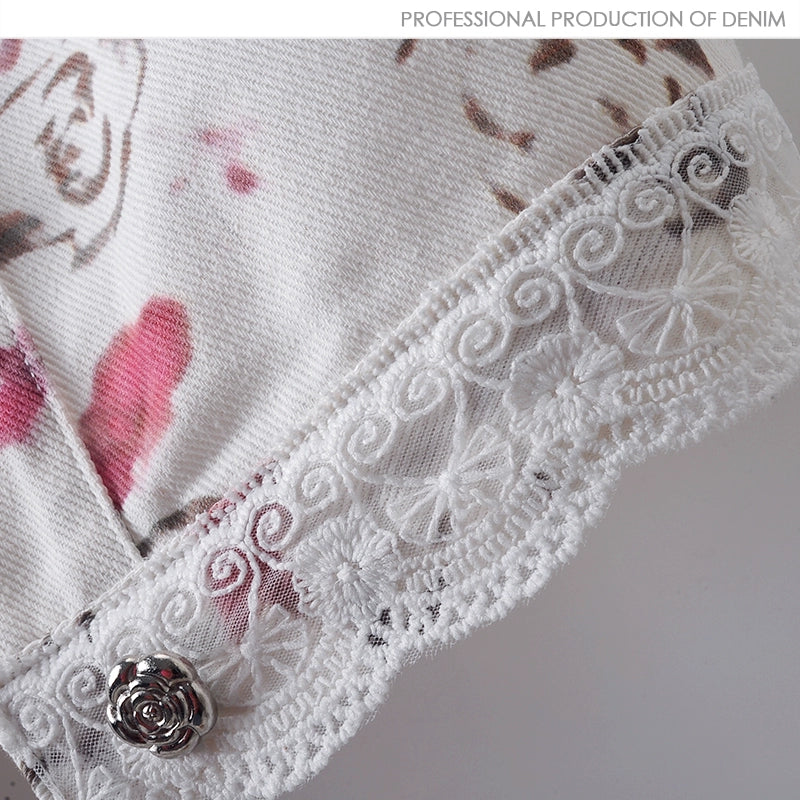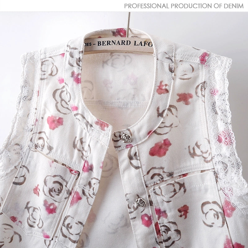 Lace Floral Print Denim Sleeveless Vest