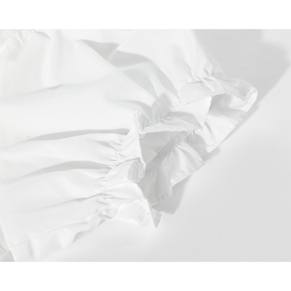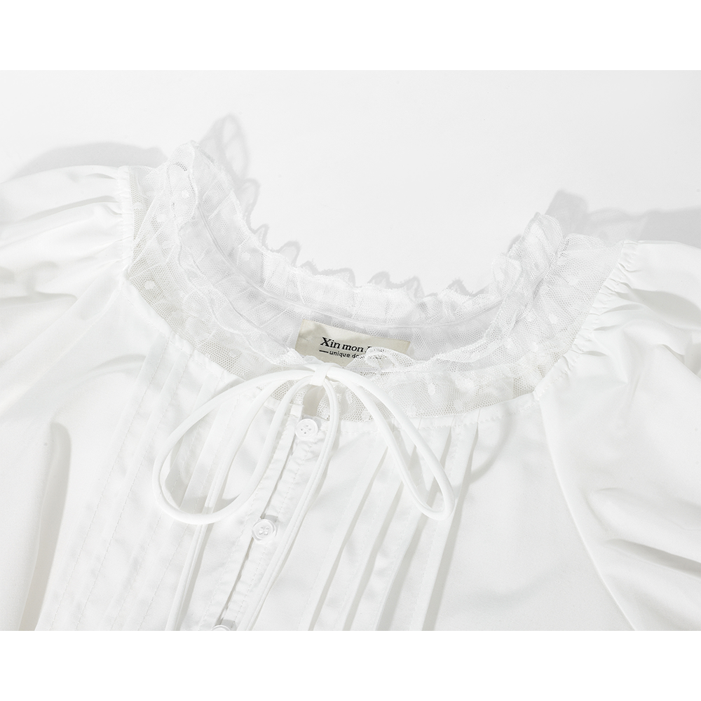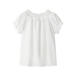 Lace Pleated Short Sleeve Button Shirt