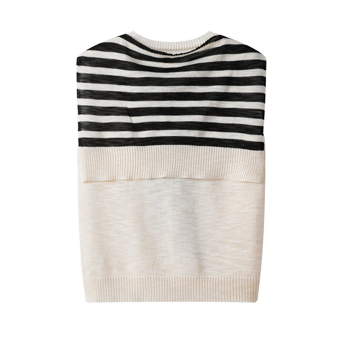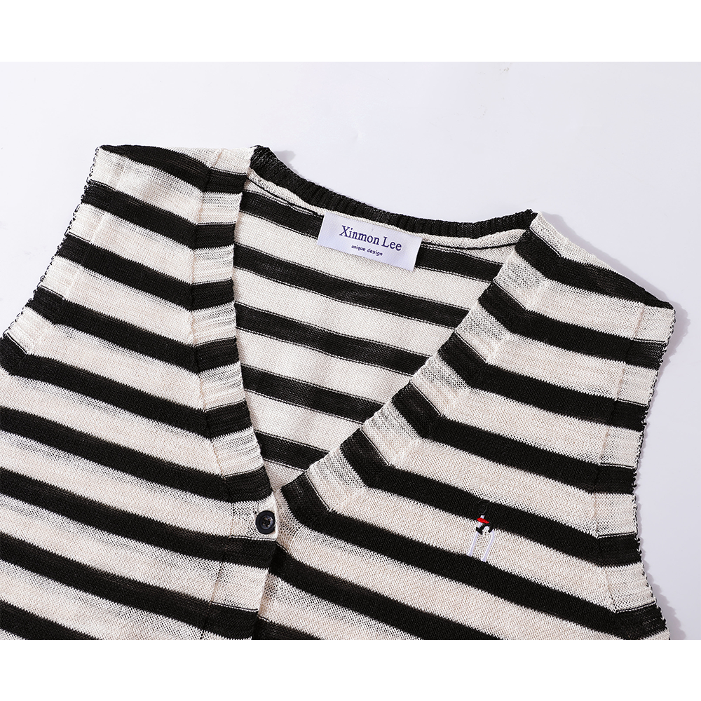 Striped Sleeveless V-Neck Knitted Vest With Shawl