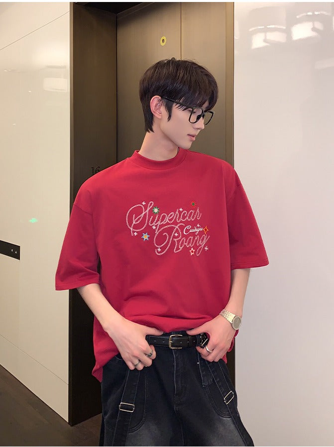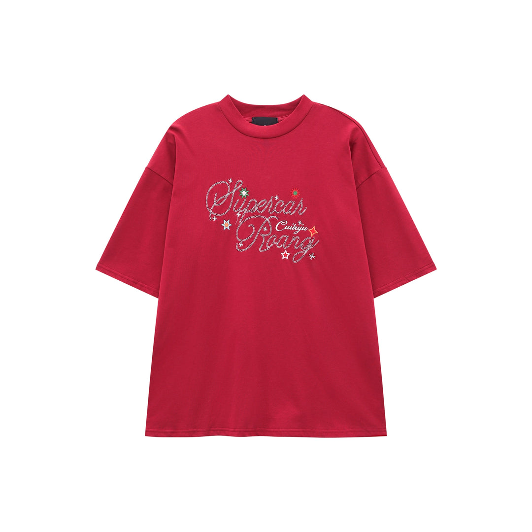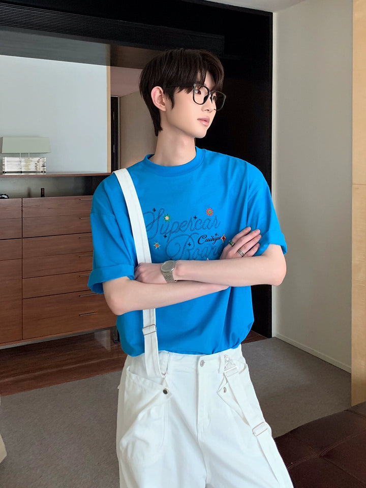 Letter Embroidery Loose Fit Short Sleeve T-Shirt