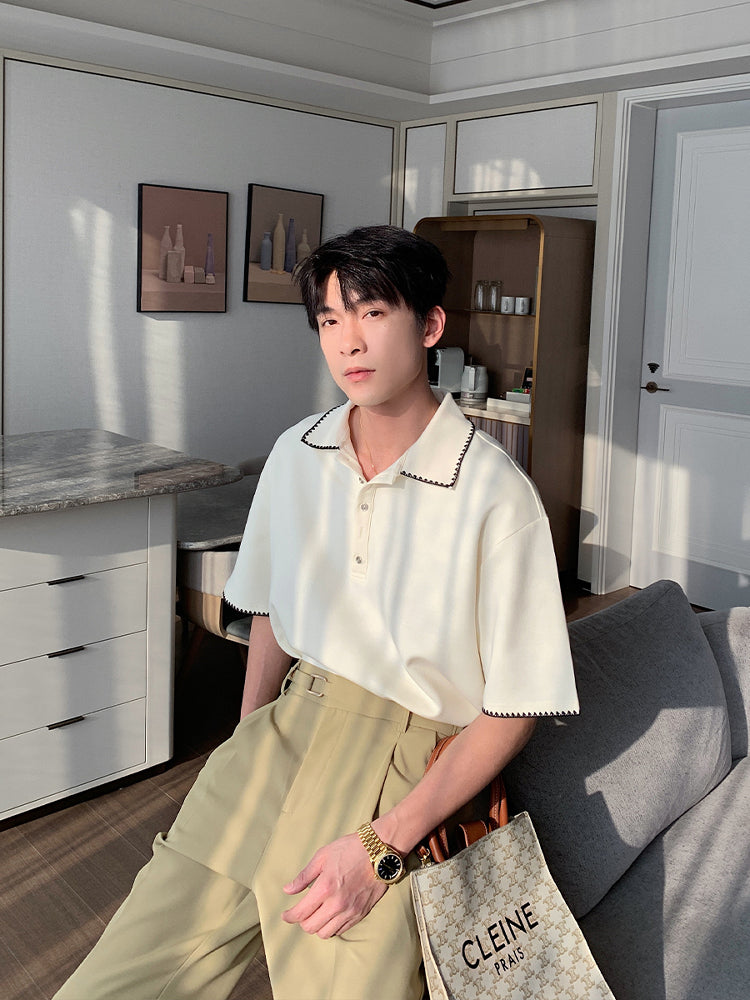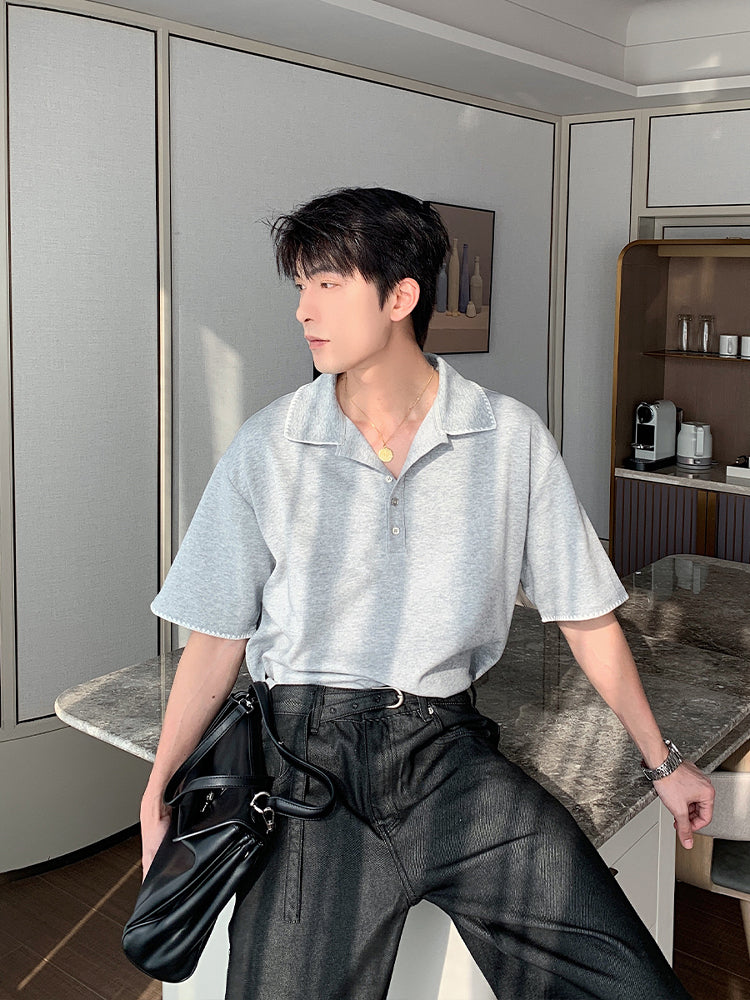 Short Sleeve Polo Shirt with Lapel