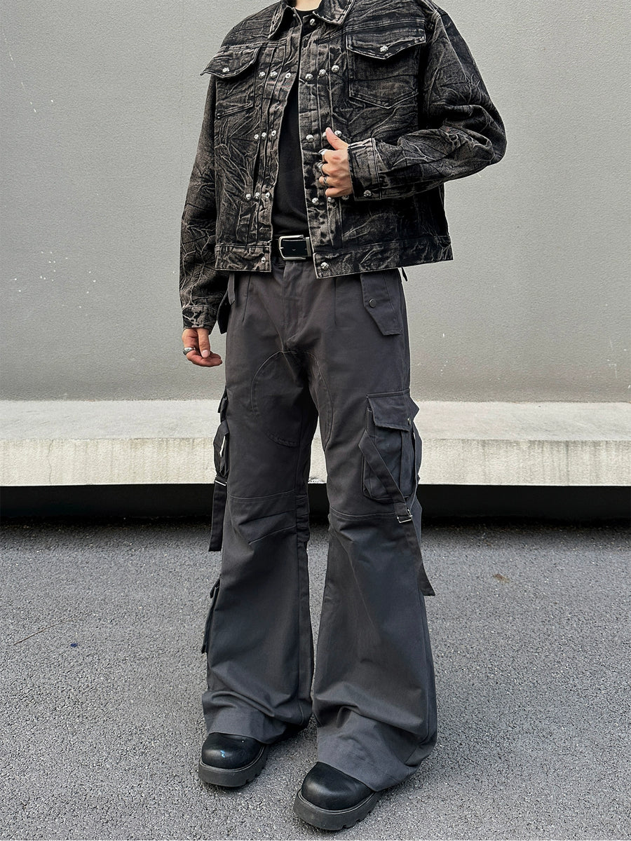 Multi-Pocket Flared Pants