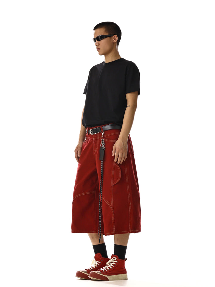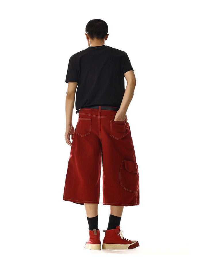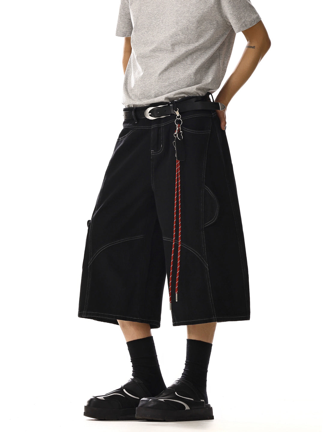 Deconstructed Denim Wide-Leg Multi-Pocket Shorts