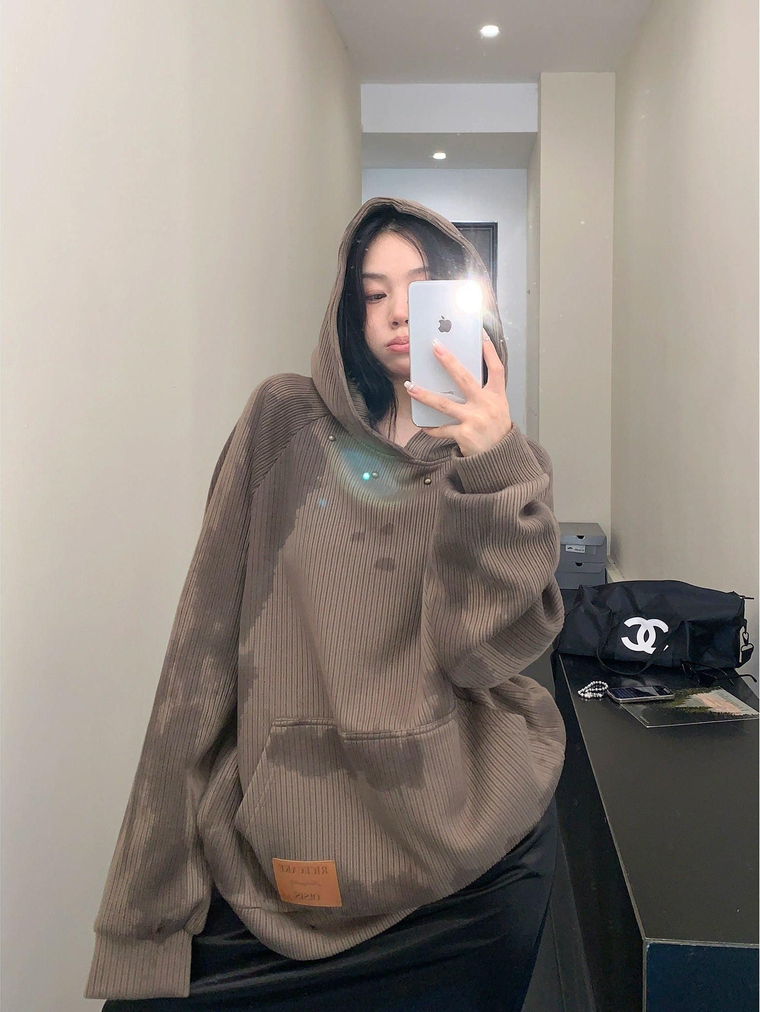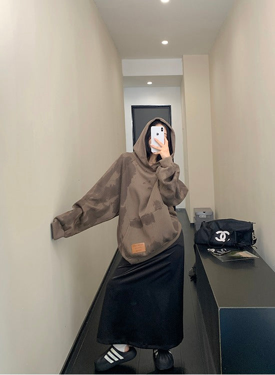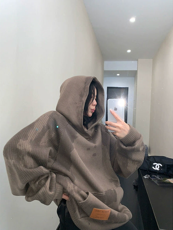 Distressed Rivet Hooded Sweatshirt