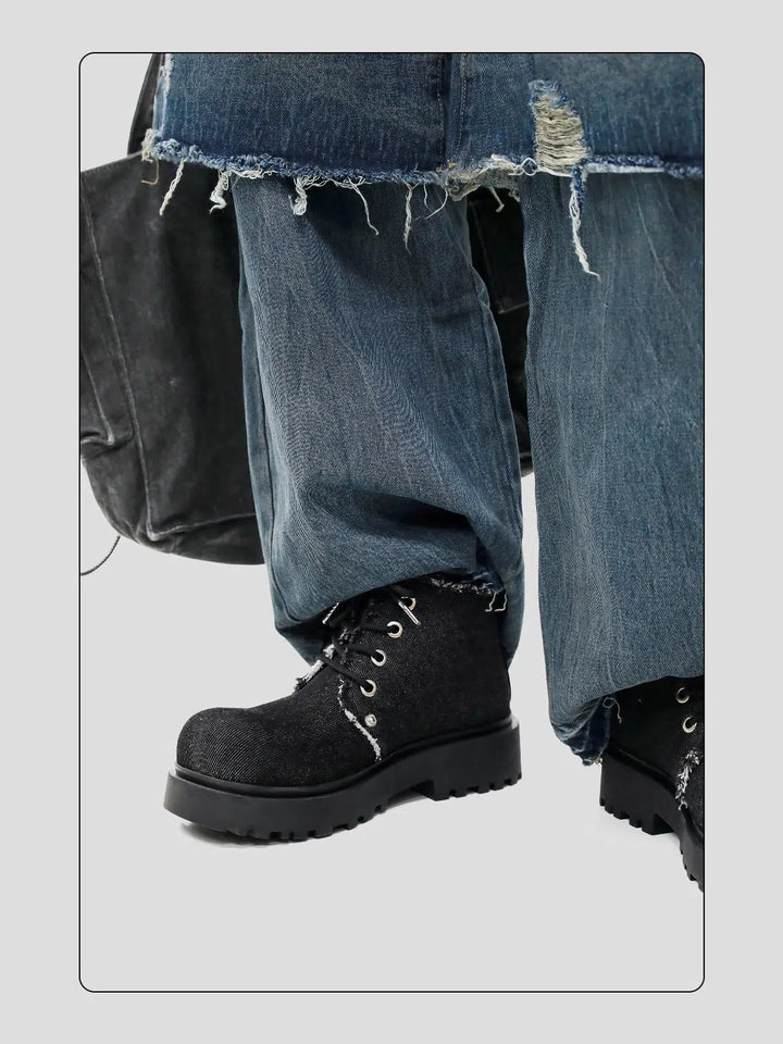 Durable Denim High-Top Martin Boots