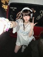 Off-Shoulder V-Neck Loose T-Shirt