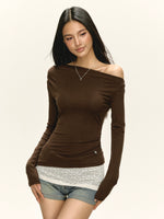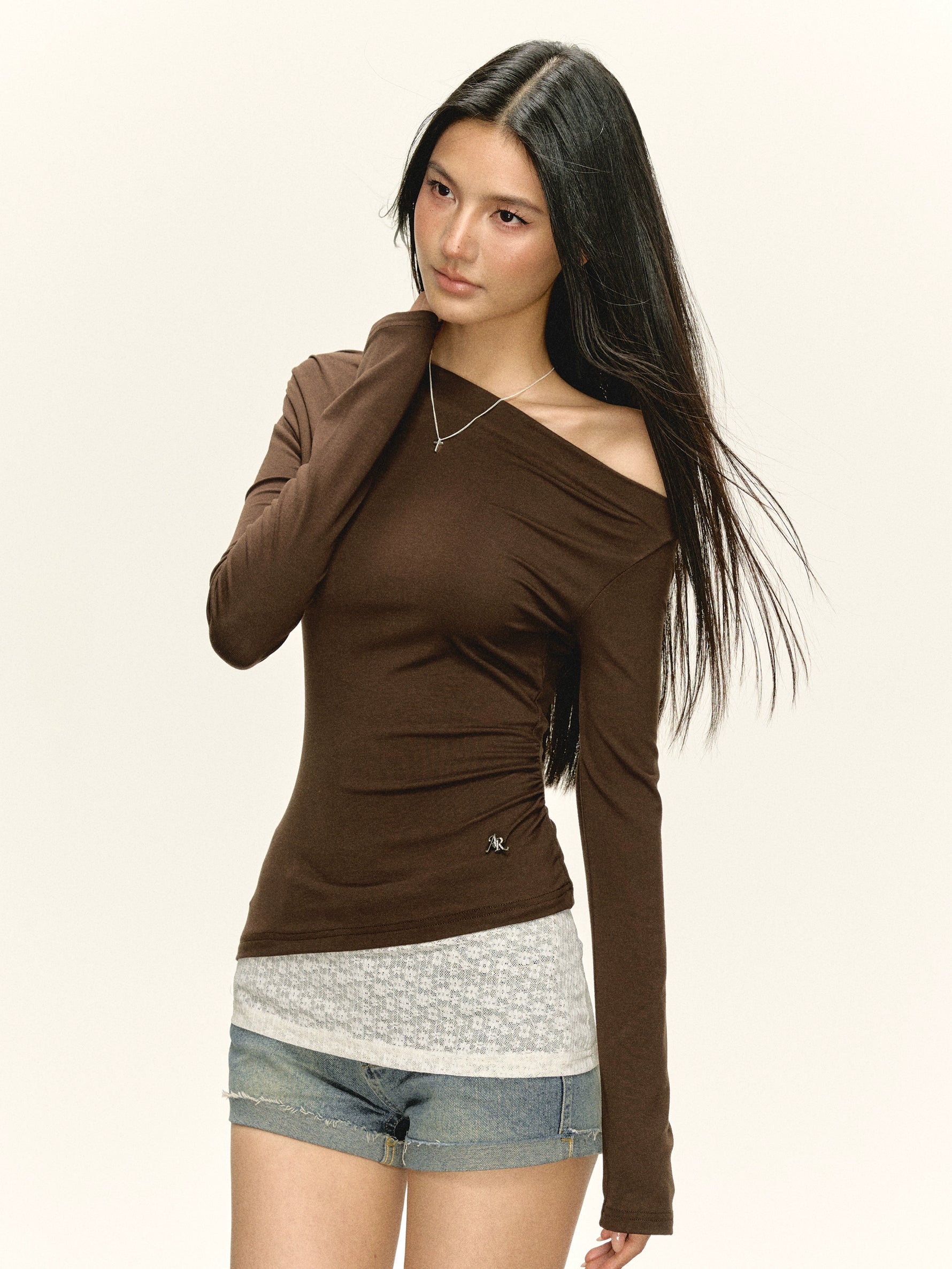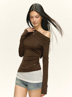 Retro Oblique Shoulder Long Sleeve Turtleneck