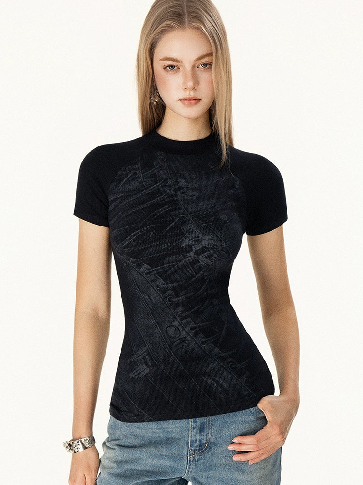 Slim Fit Short Sleeve Graphic Turtleneck
