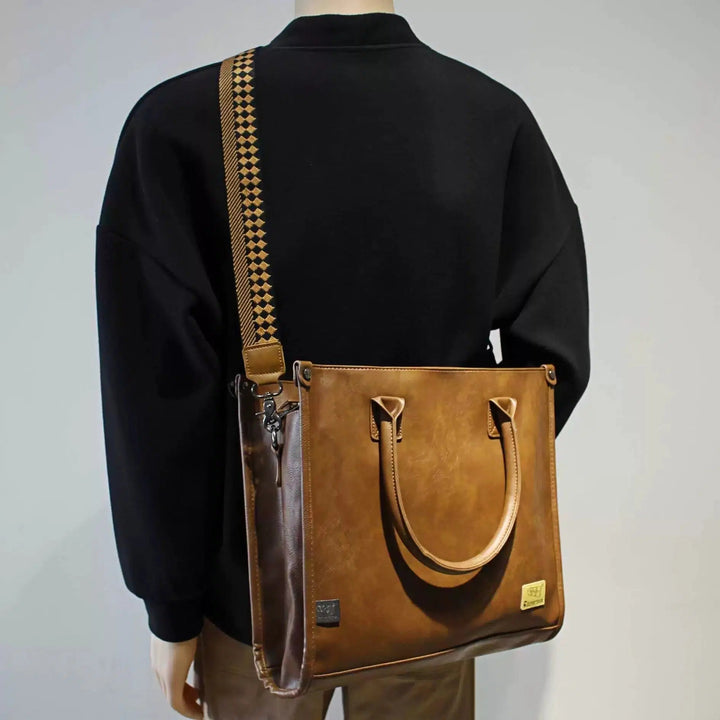 Patterned Strap Leather Messenger Tote