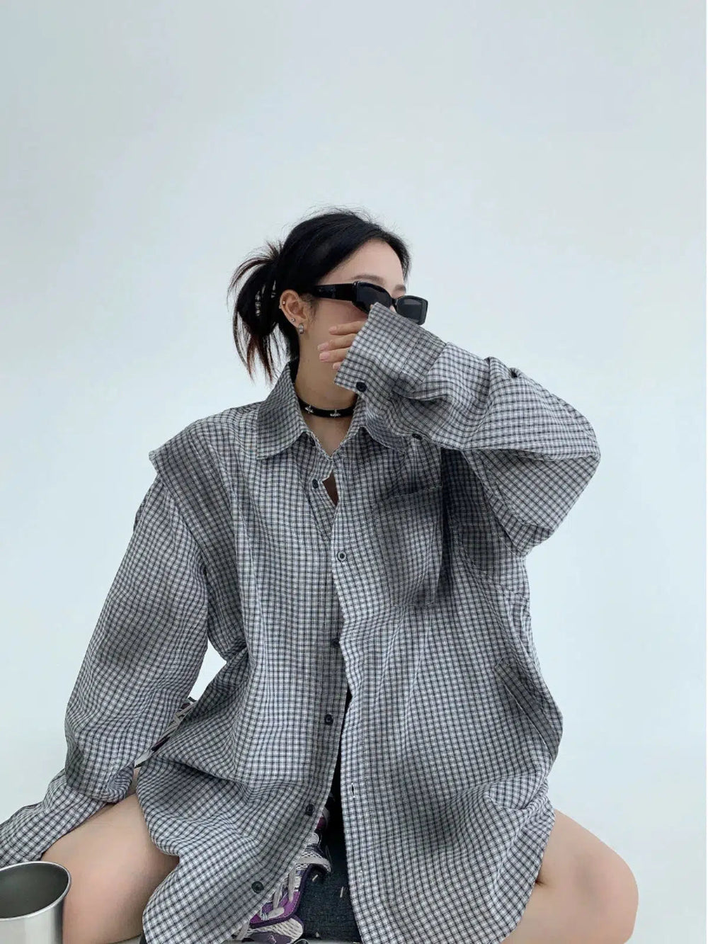 Oversized Checkered Button-Up Shirt