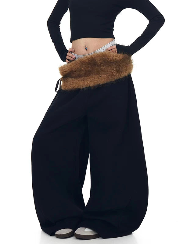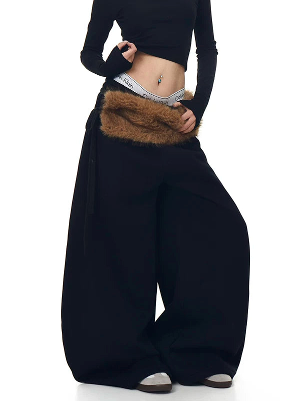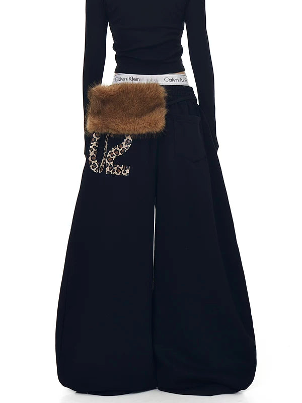 Pantalones de leopardo de pierna ancha con forro de felpa
