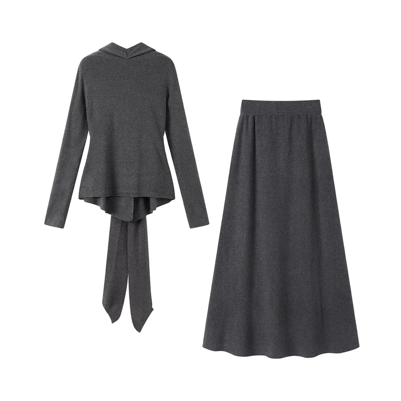 Conjunto de dos piezas de cárdigan de punto y falda larga