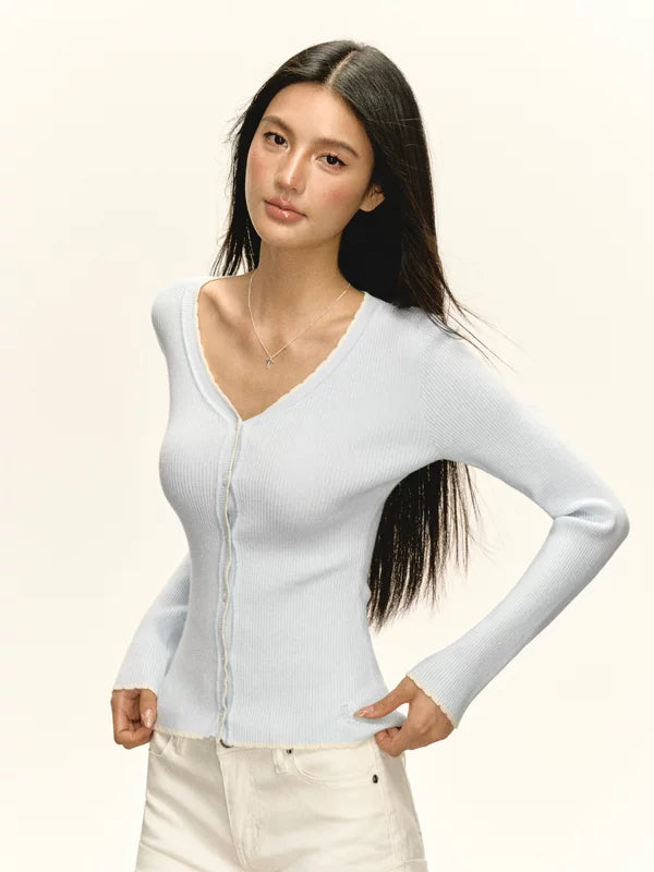Suéter de punto con botones en la parte delantera y cuello en V acanalado