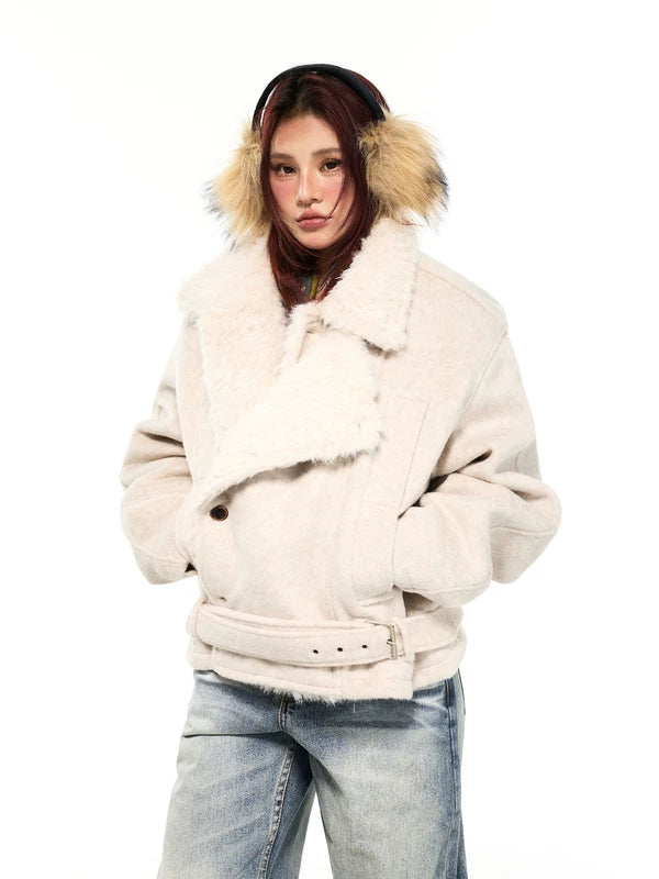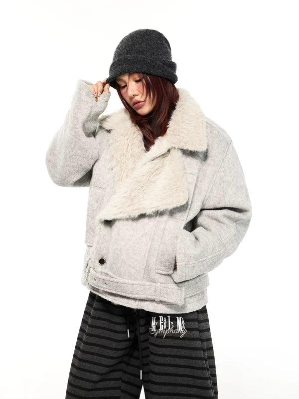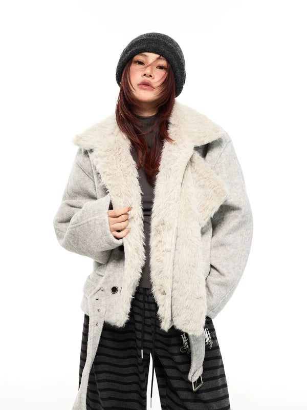 Chaqueta de mezcla de lana con cuello de piel sintética