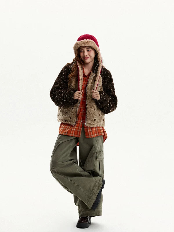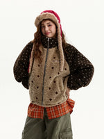 Chaqueta de forro polar con cuello alto de lunares