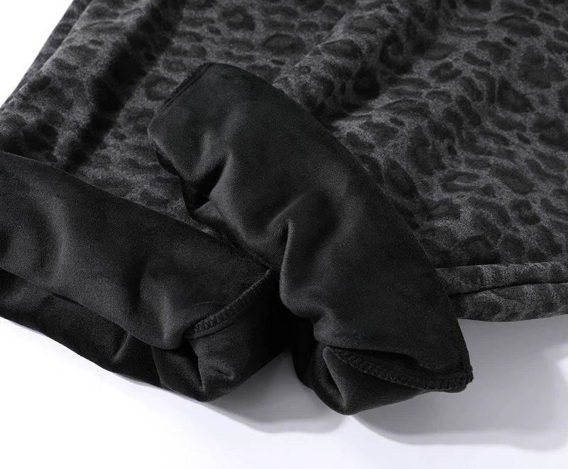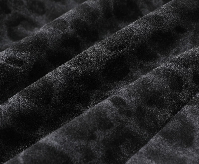 - Tejido suave, de peluche con un sutil patrón de leopardo