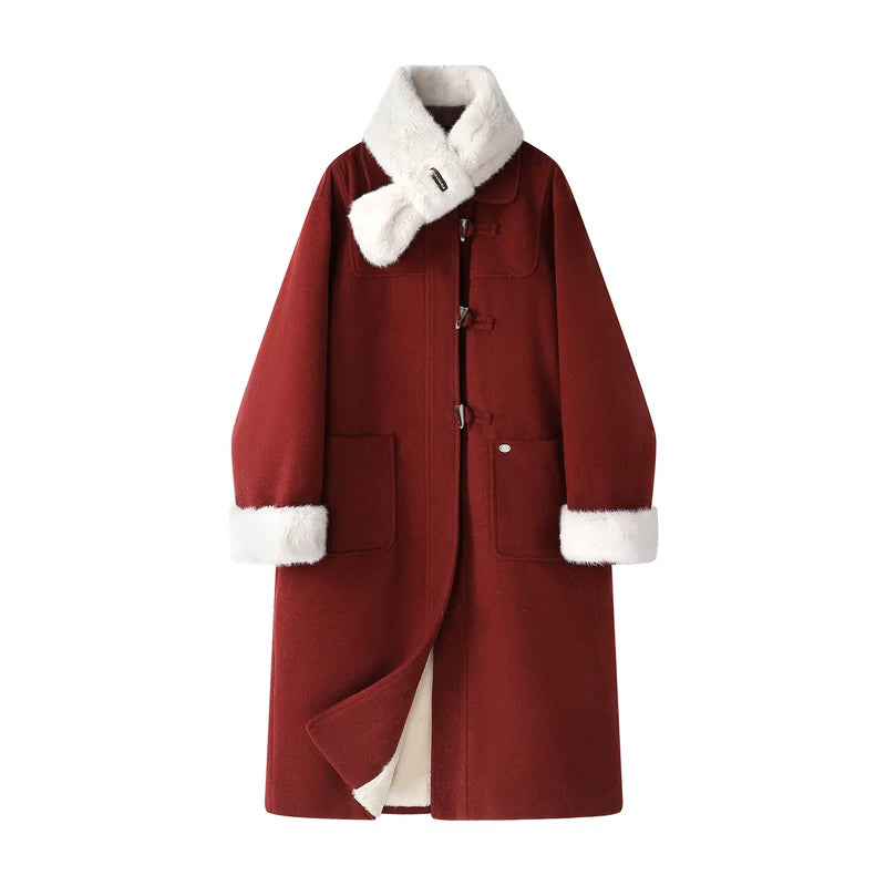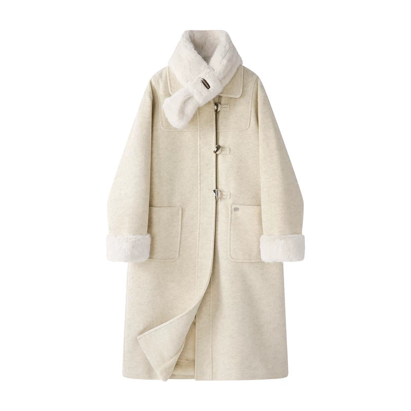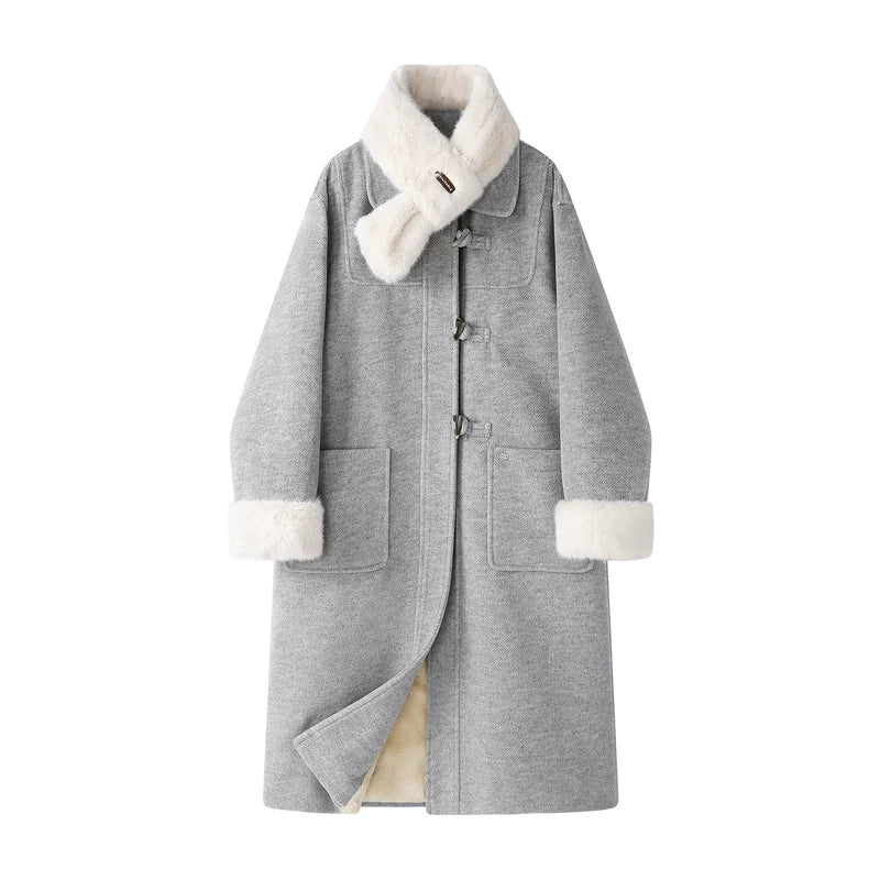 Abrigo de duffle de lana larga con forro de forro polar