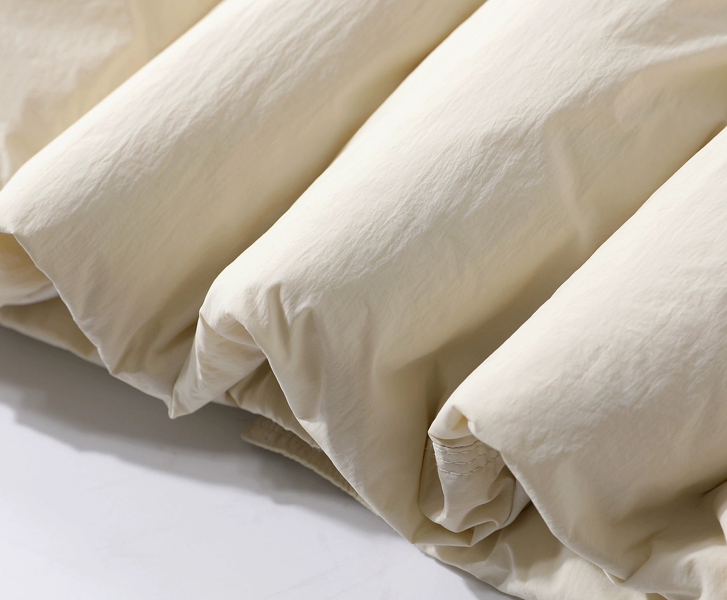 - Evitar la exposición a la luz solar intensa, que puede causar fácilmente oxidación y amarillamiento; voltear la prenda del revés al secar al aire libre.