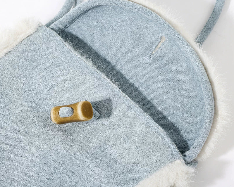 - Bolsa cruzada a juego con cierre de toggle y ribete de pelaje sintético