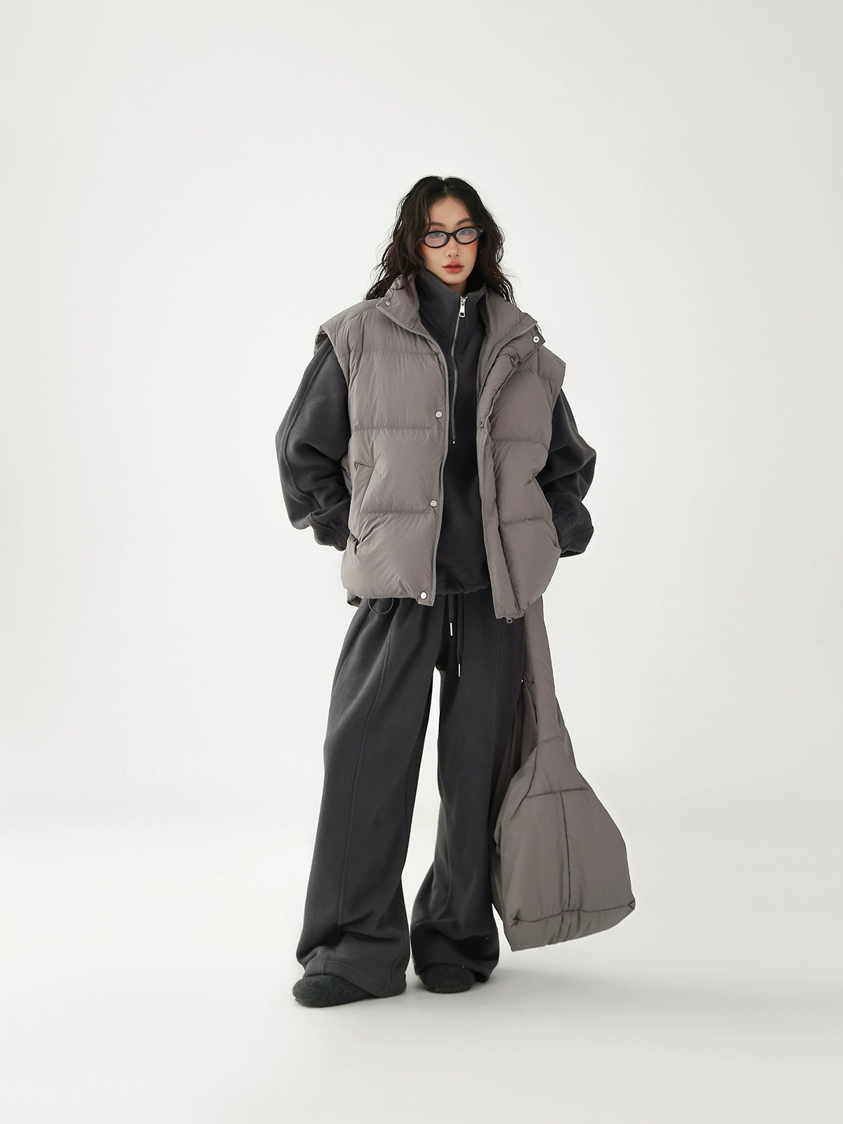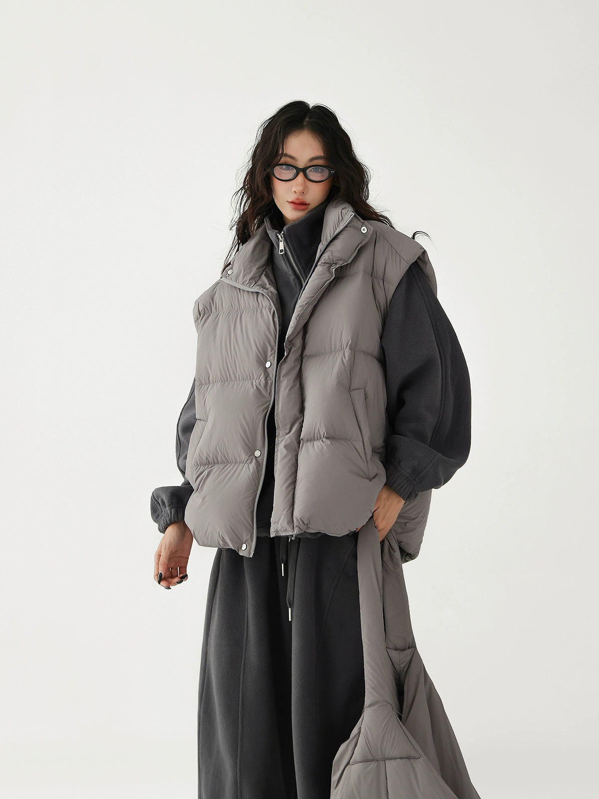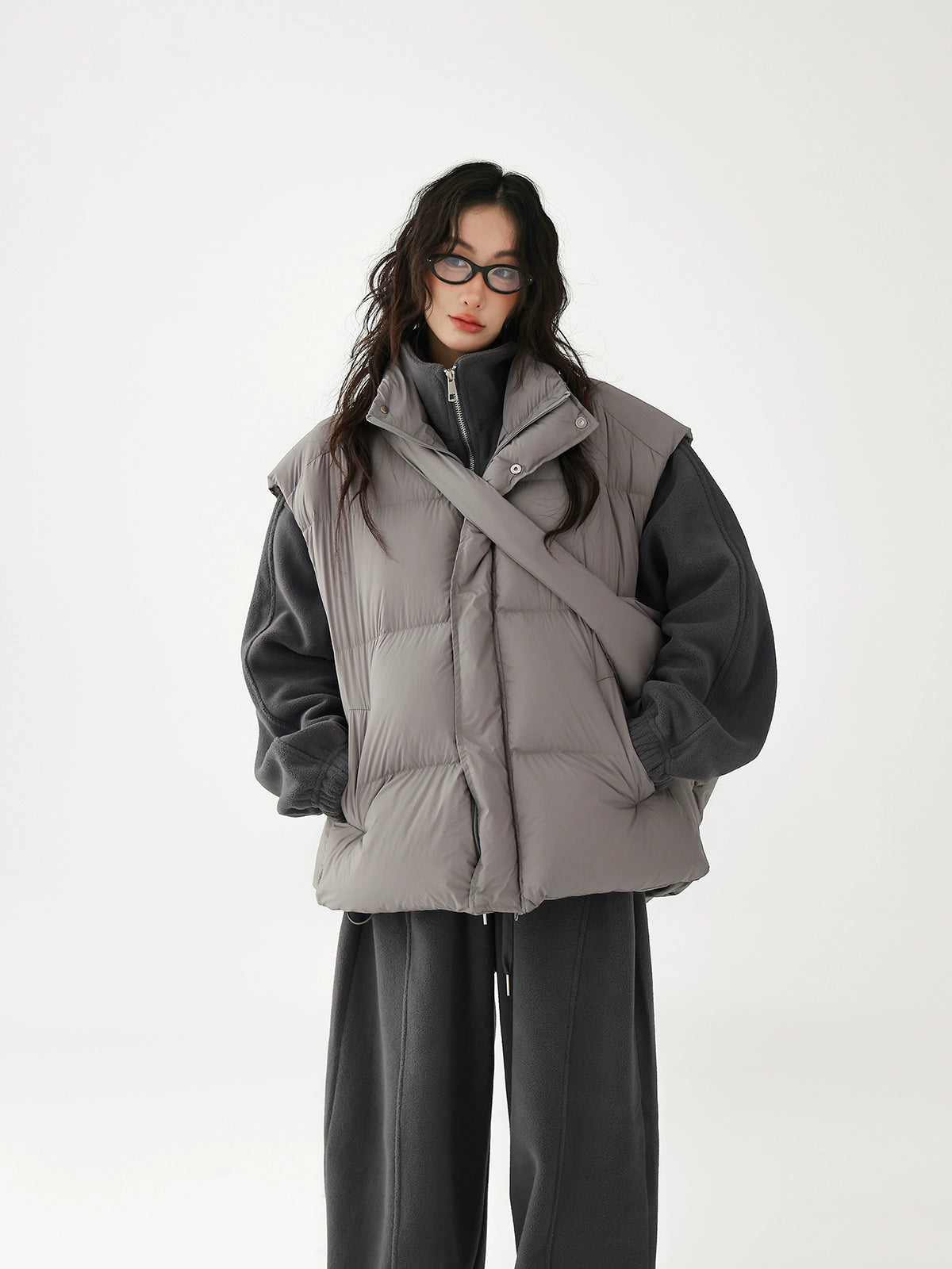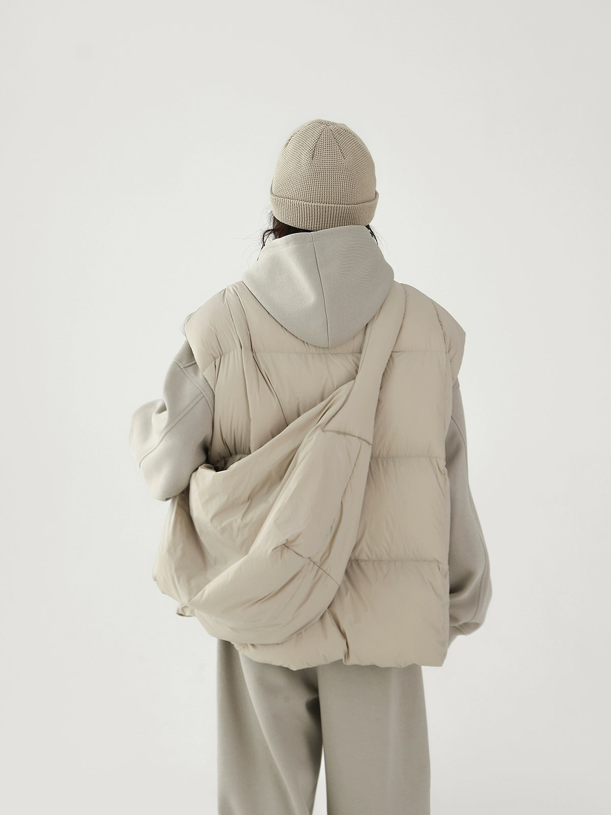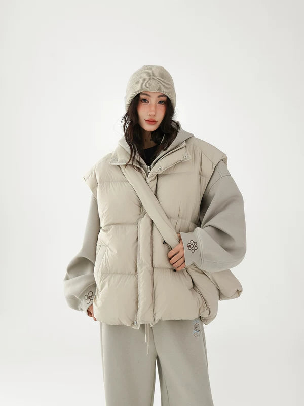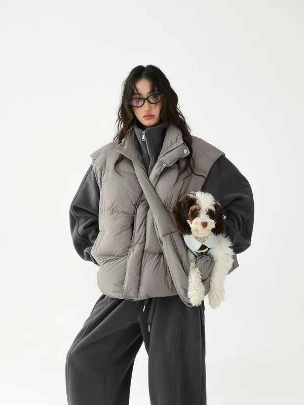 Chaleco de plumas grueso con bolsa cruzada