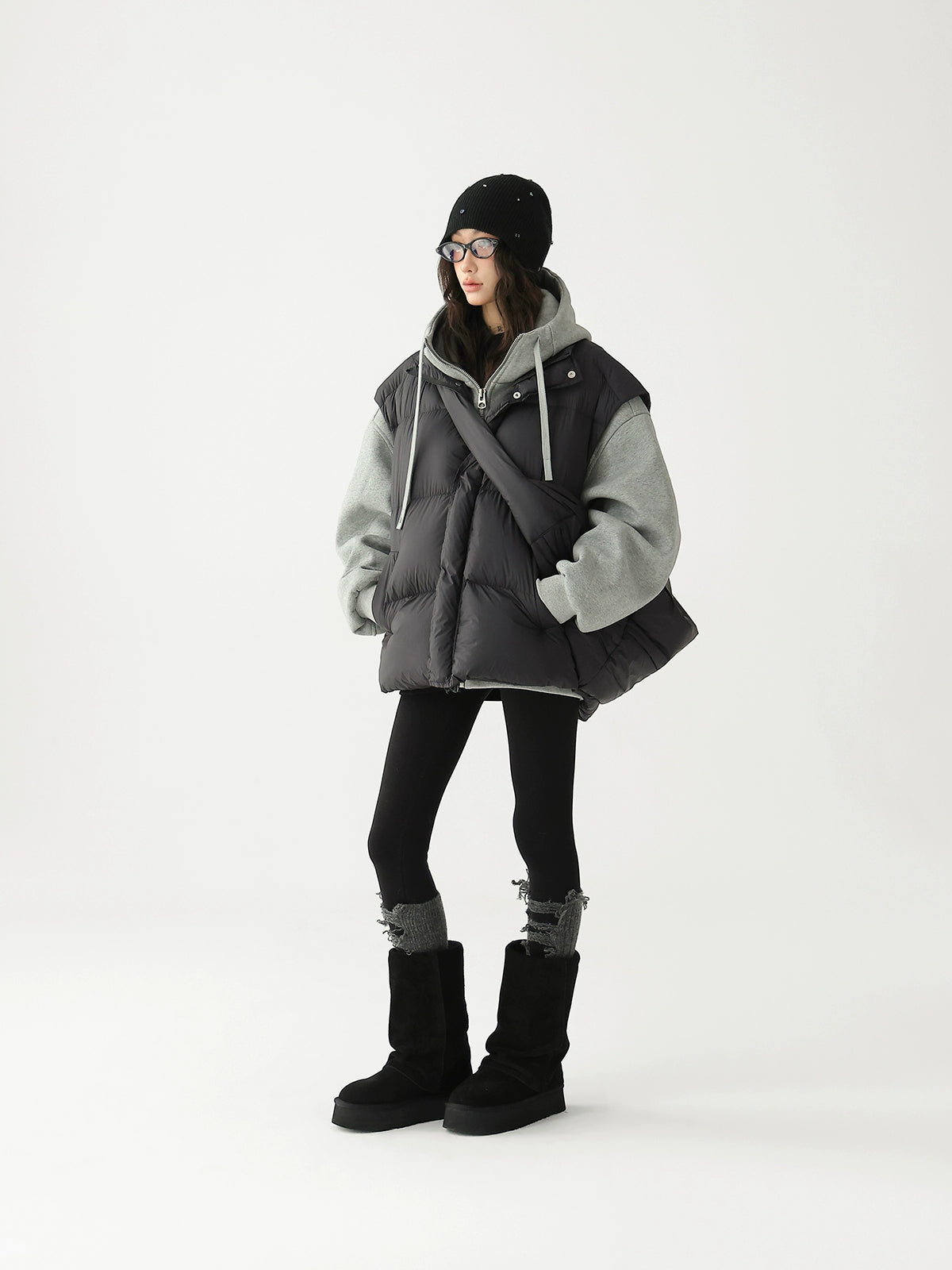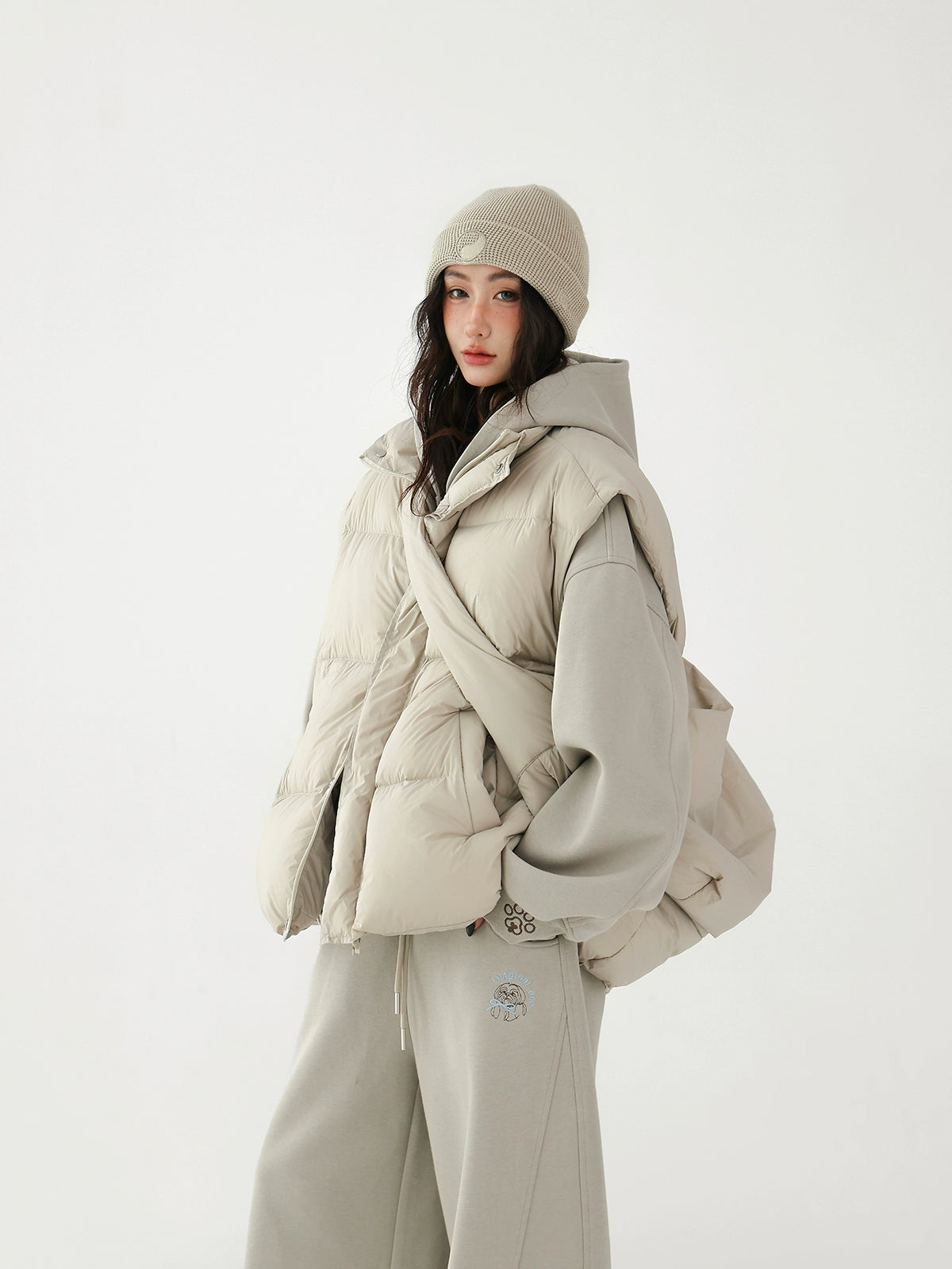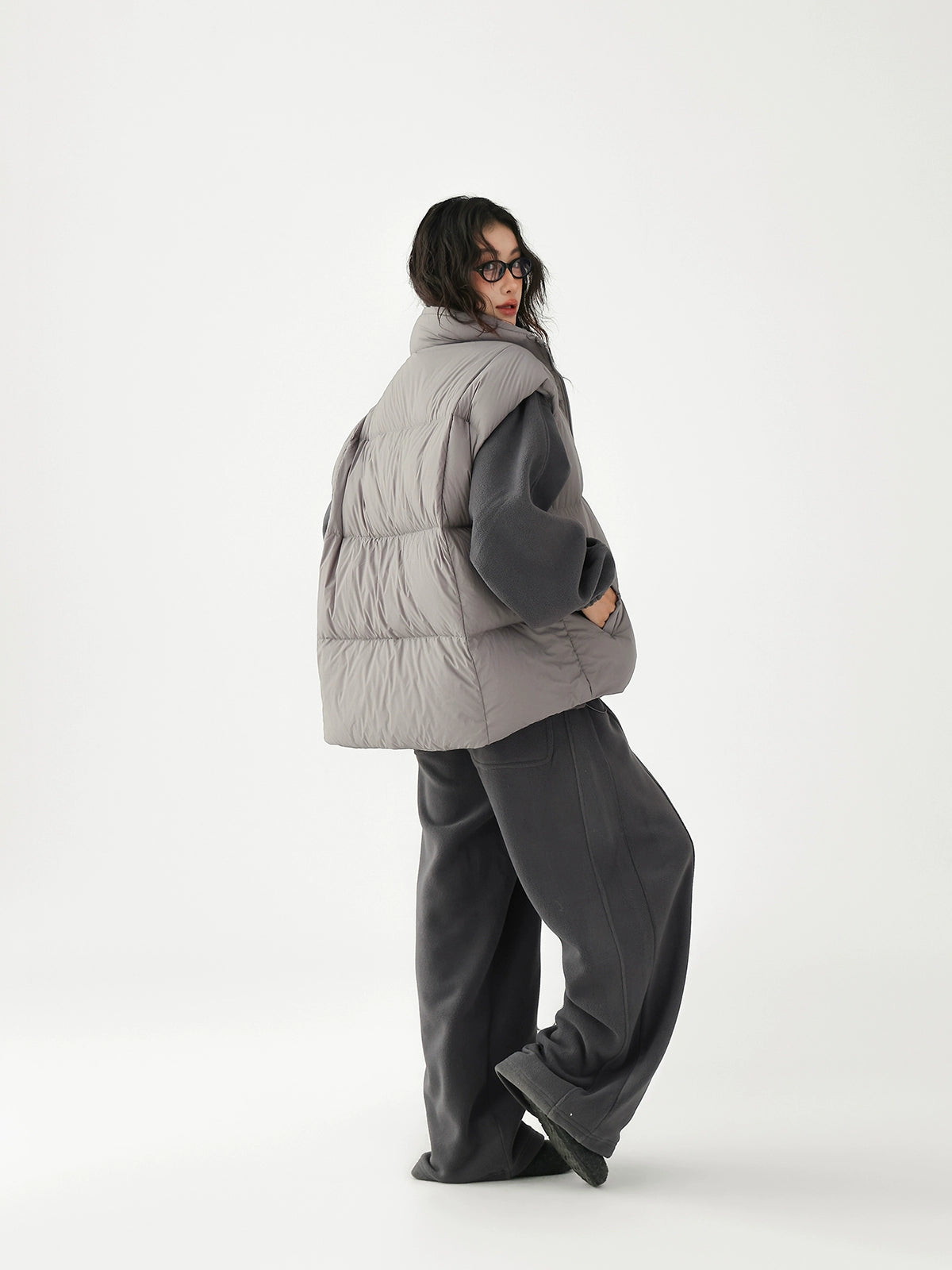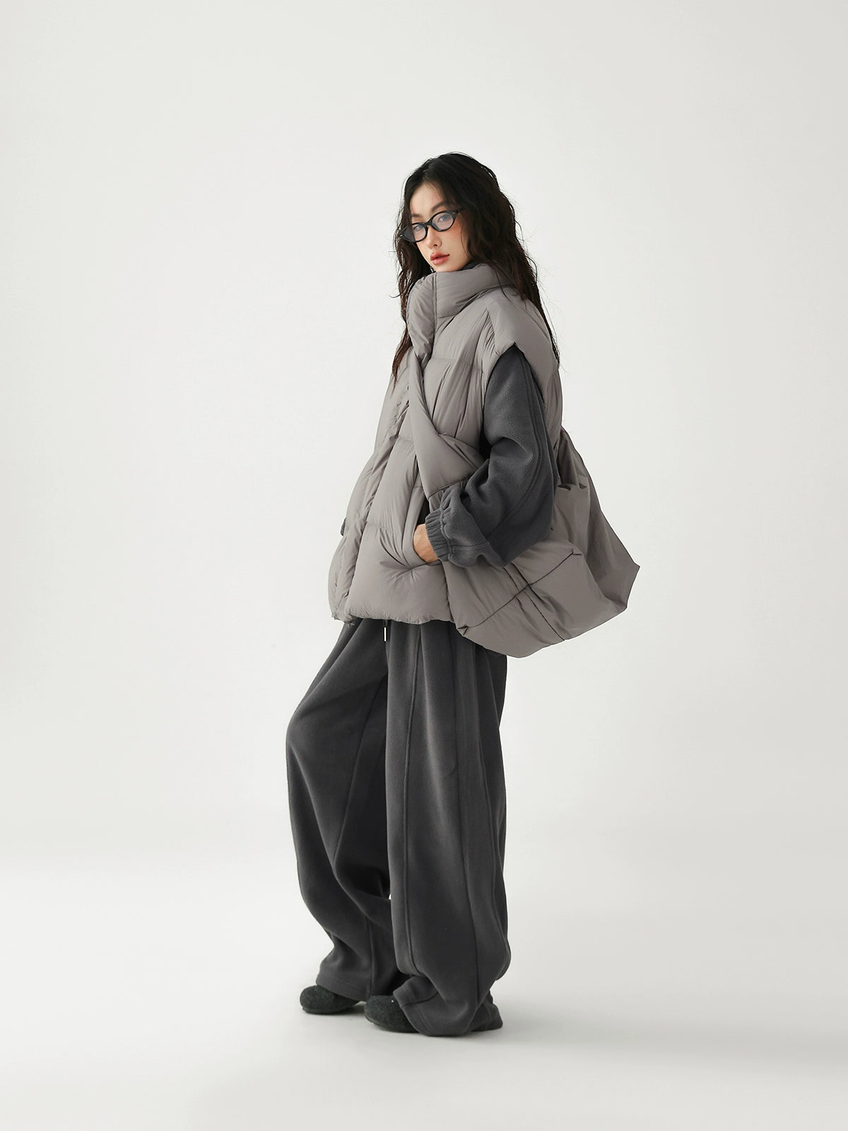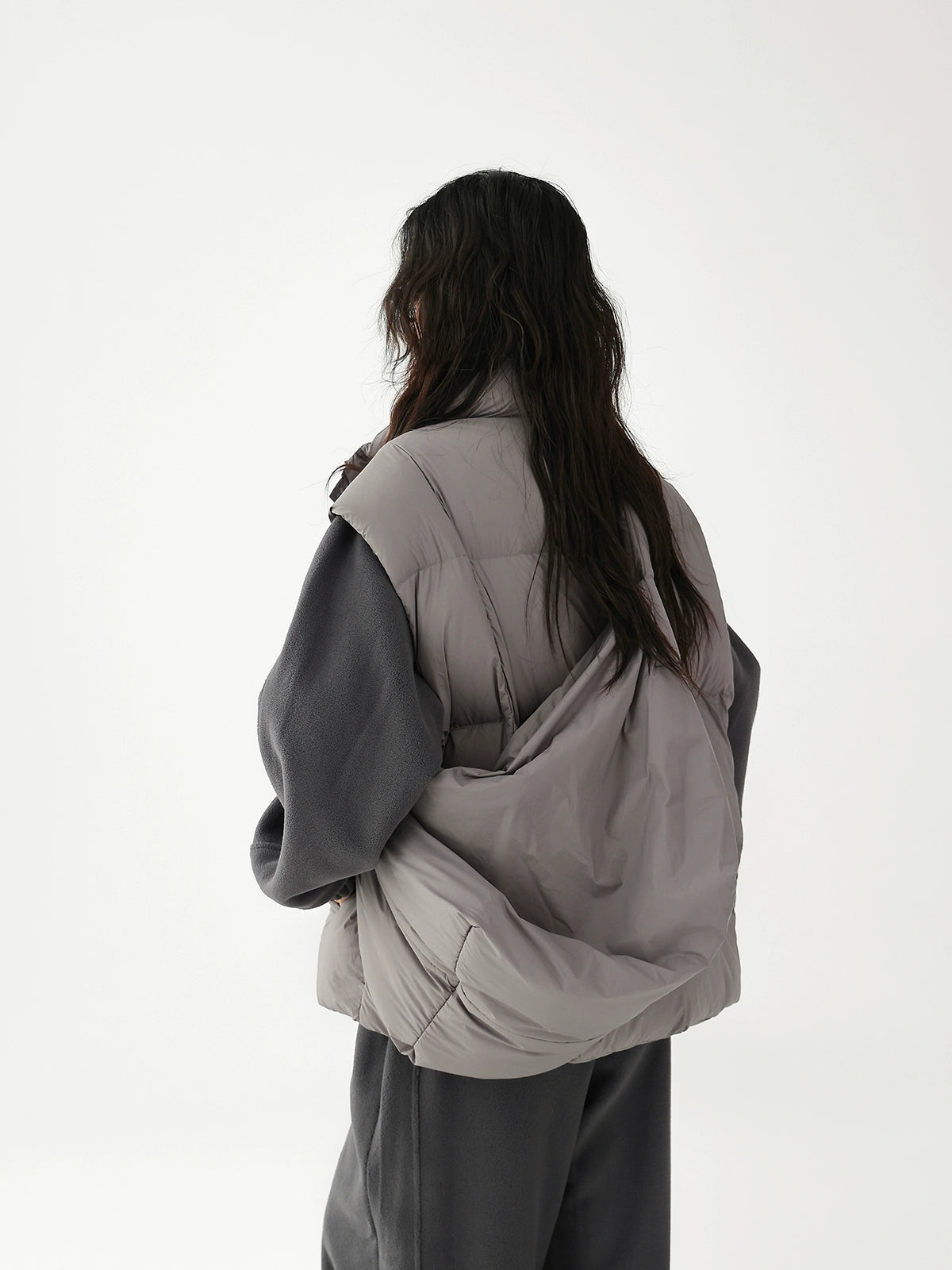 Chaleco de plumas grueso con bolsa cruzada