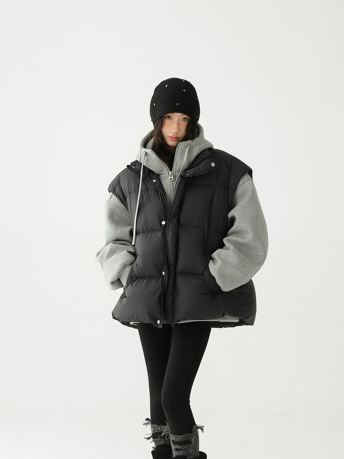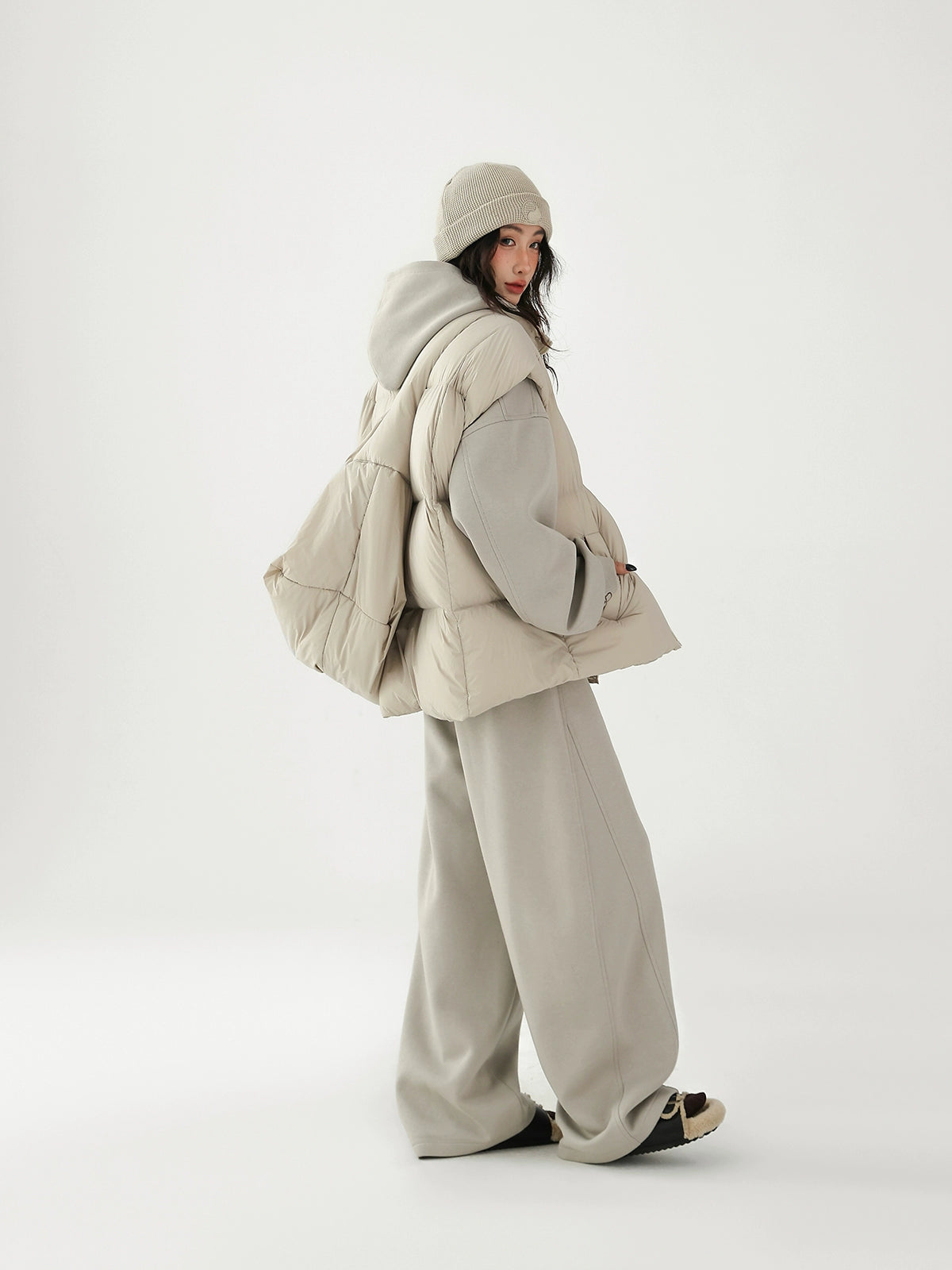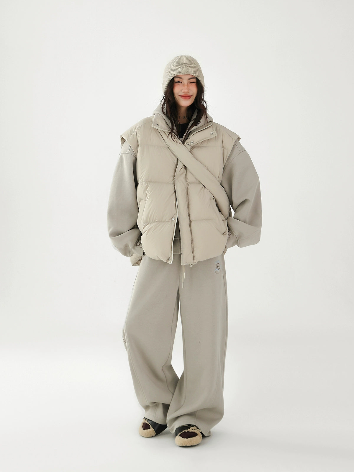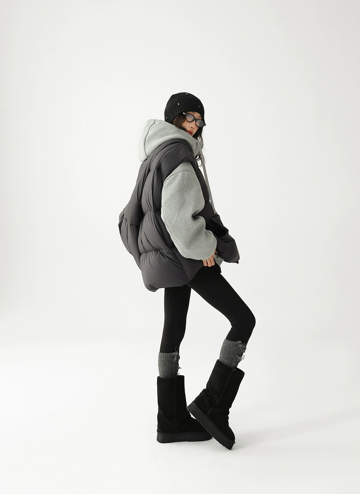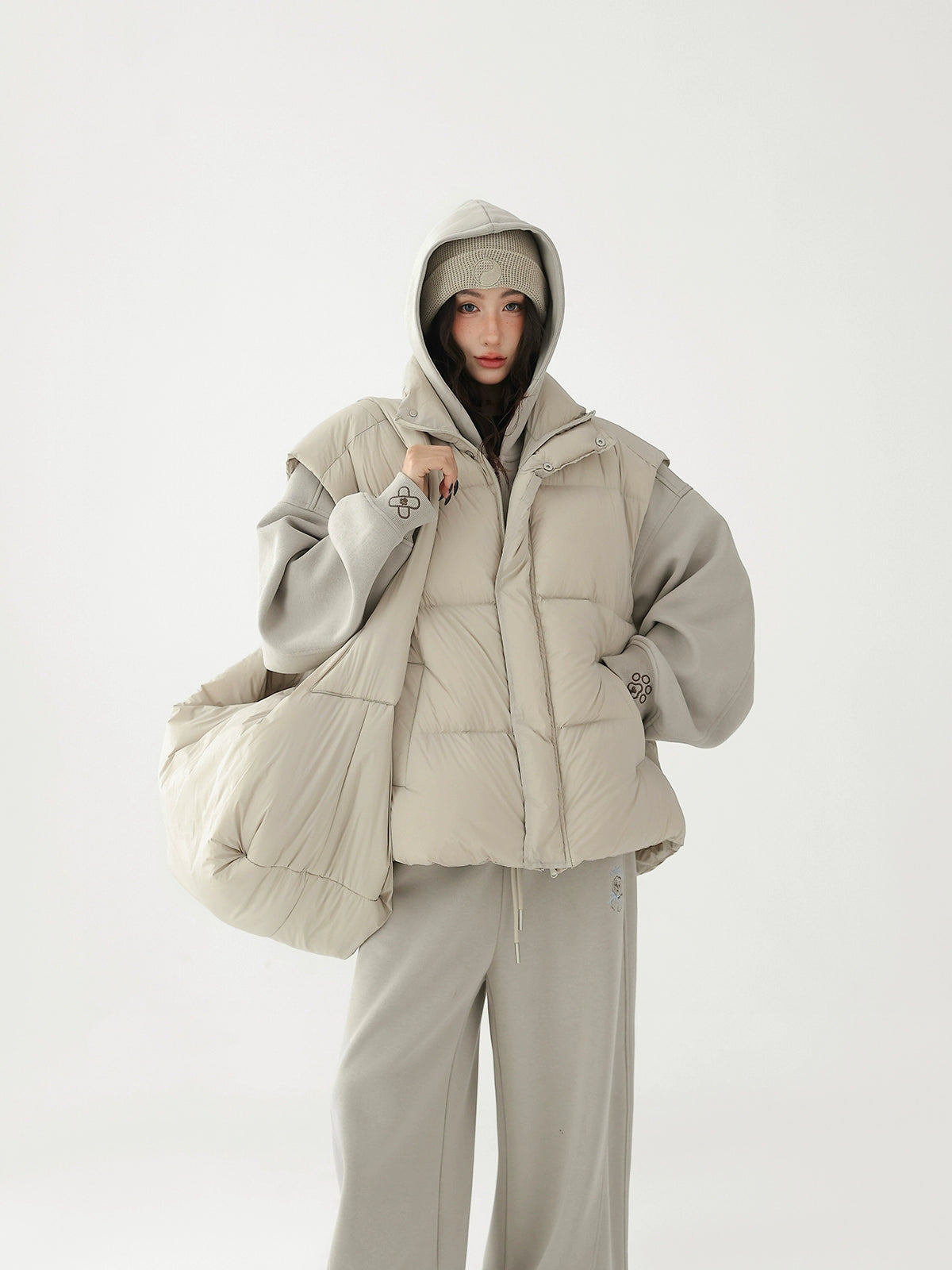 Chaleco de plumas grueso con bolsa cruzada