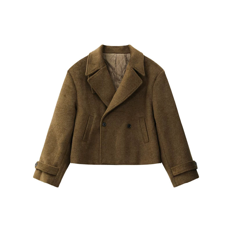 - Exterior: 20% lana, 20% viscosa, 15% spandex, 45% fibra de poliéster