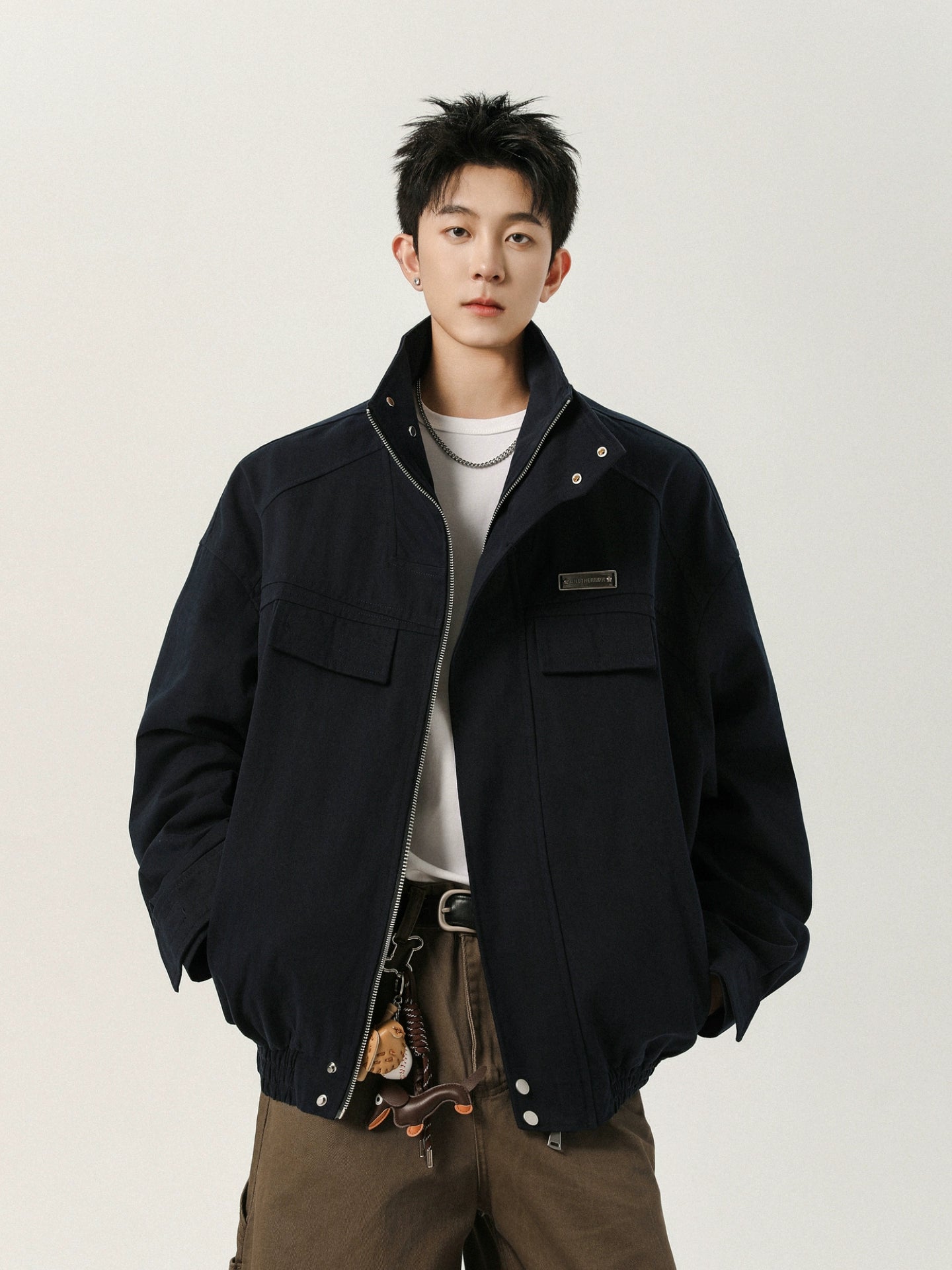 - Estilo: Chaqueta de color sólido con cuello de pie