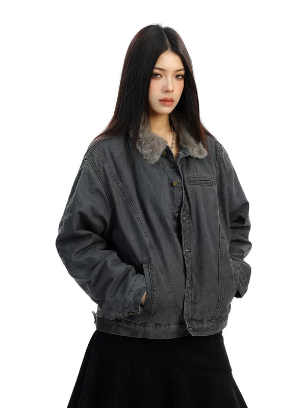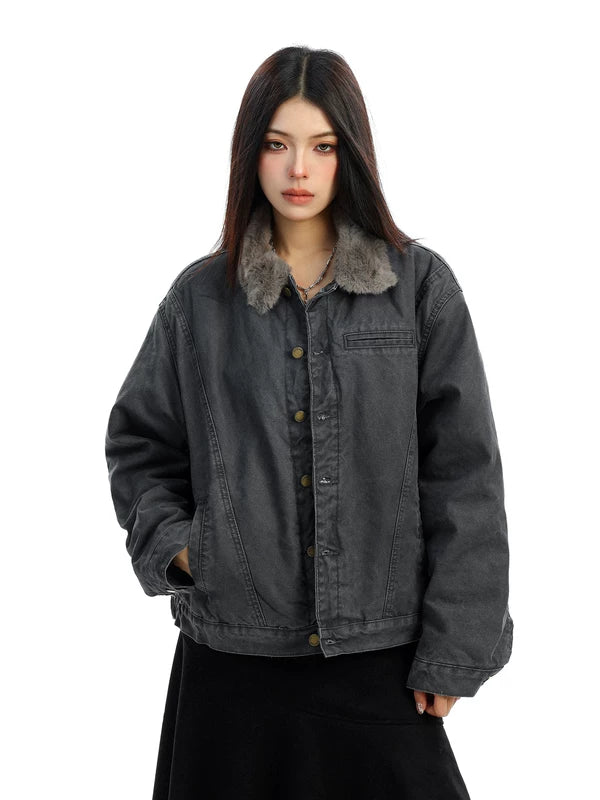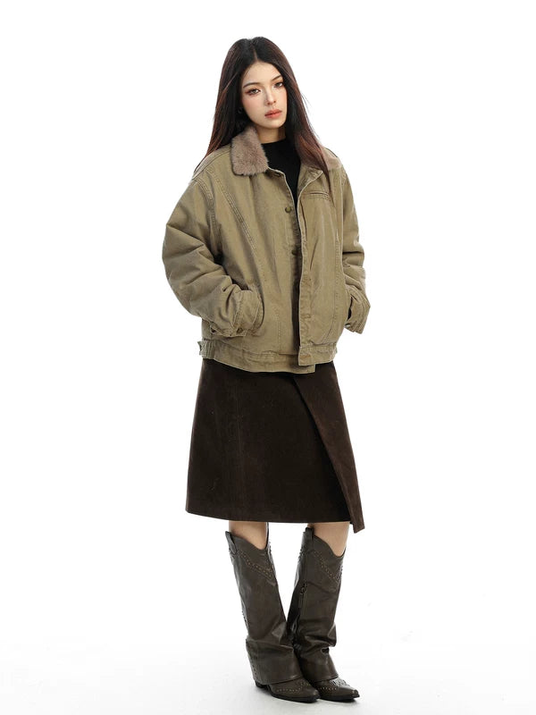 Chaqueta de invierno acolchada con collar de felpa retro
