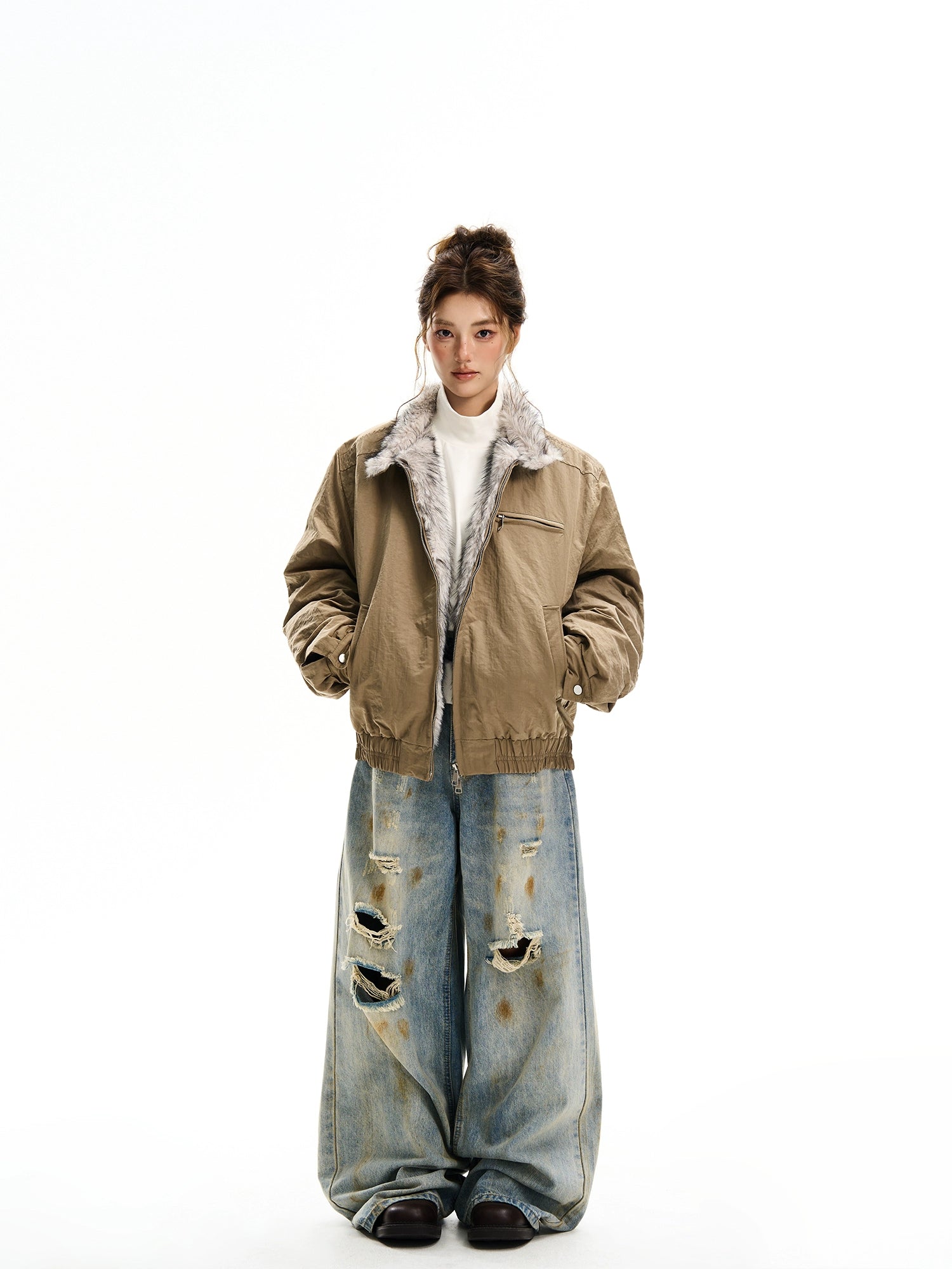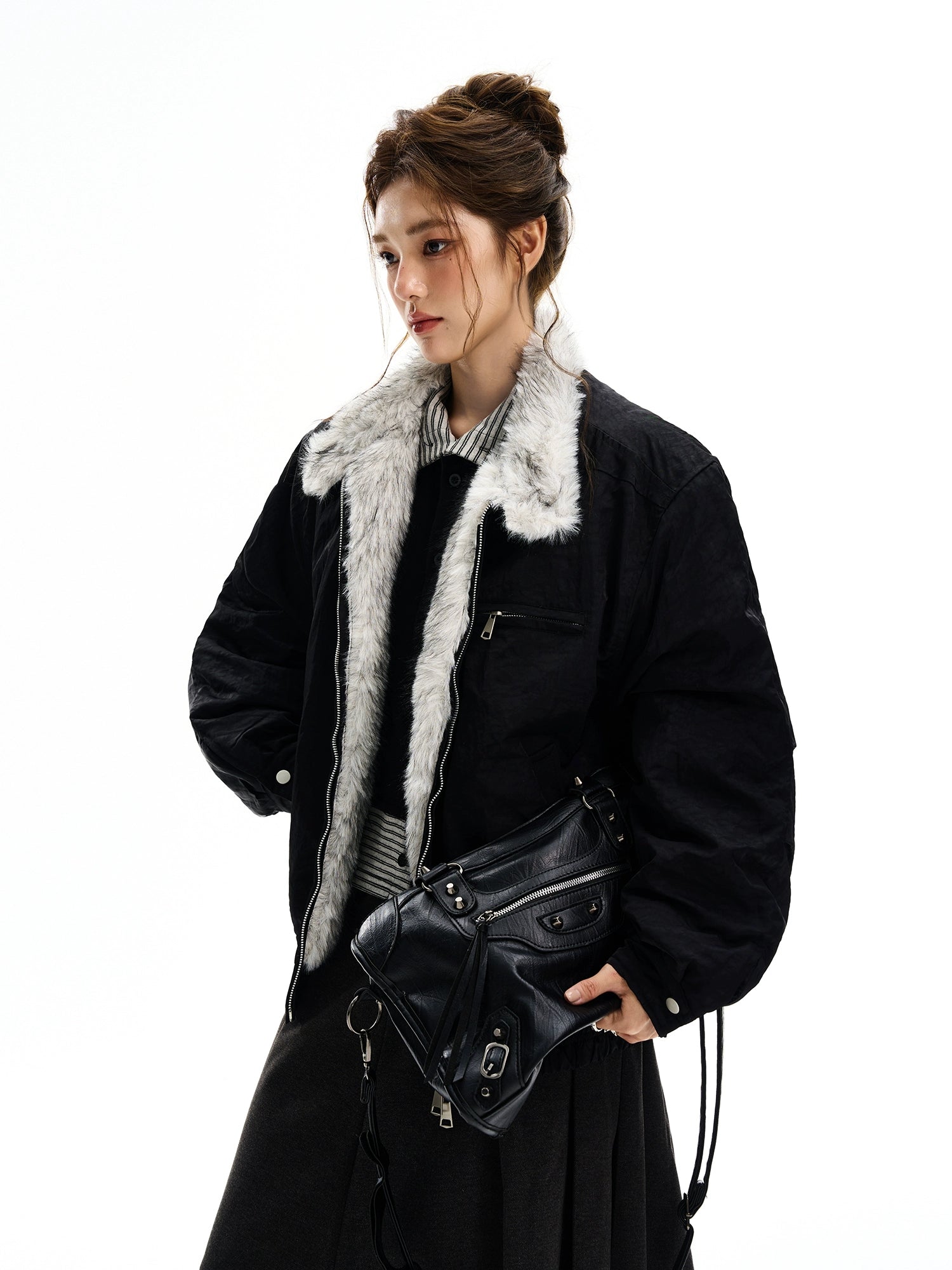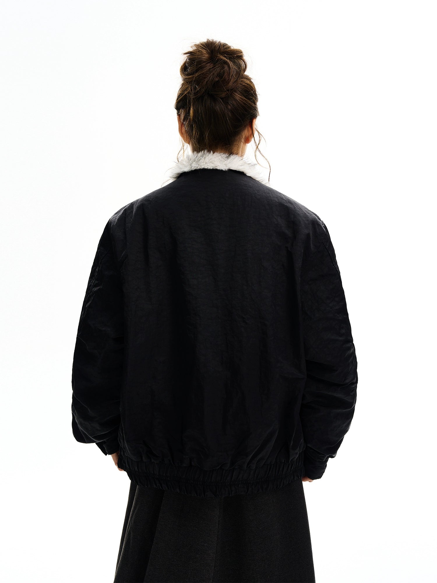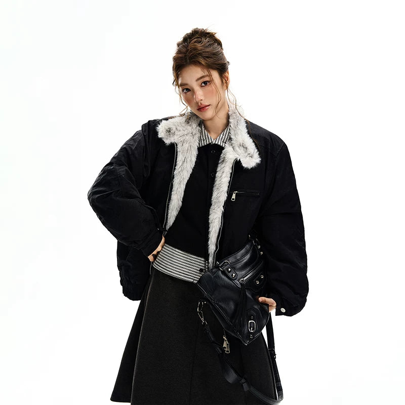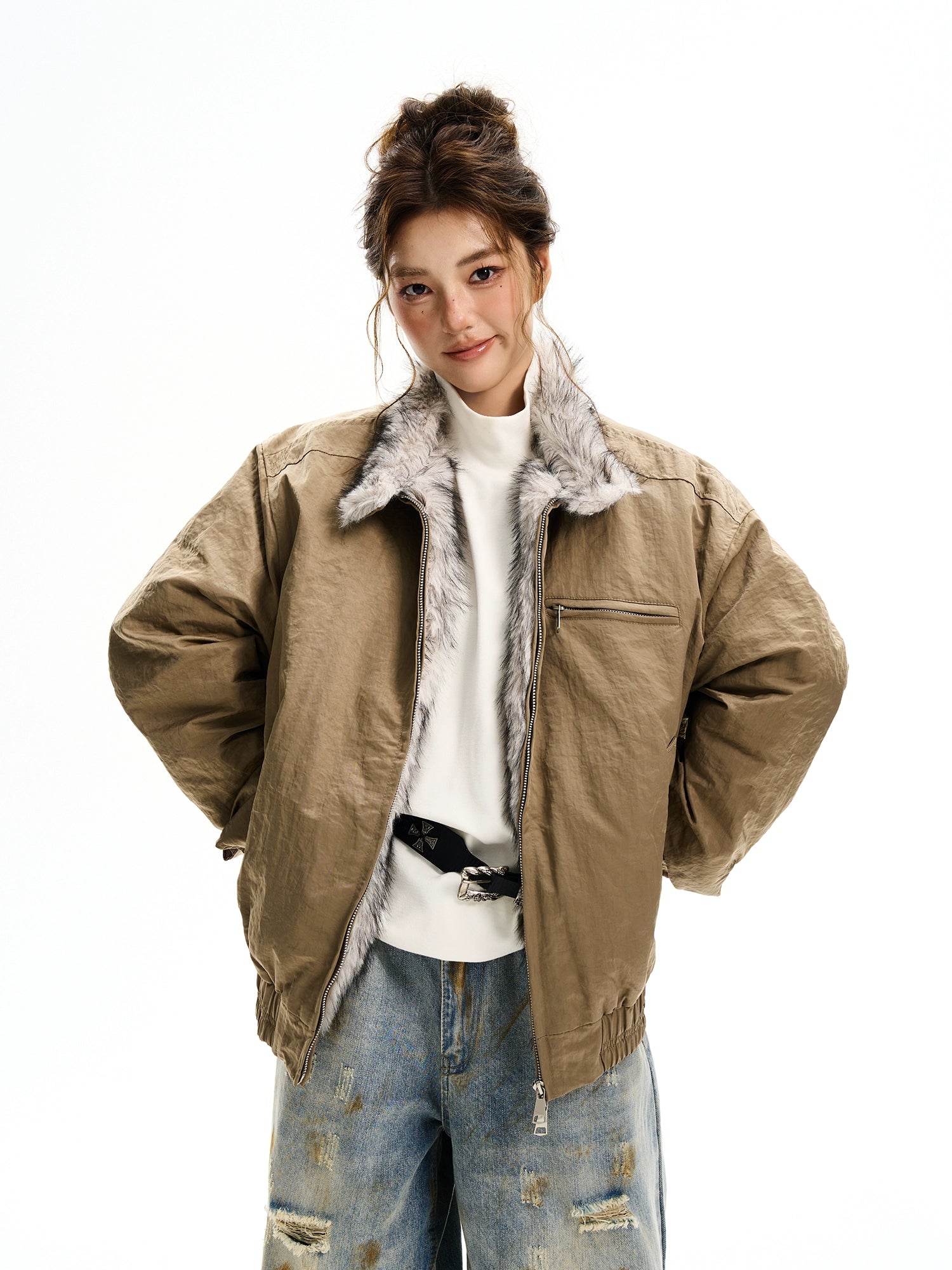 Chaqueta parka acolchada de algodón con cuello de piel sintética