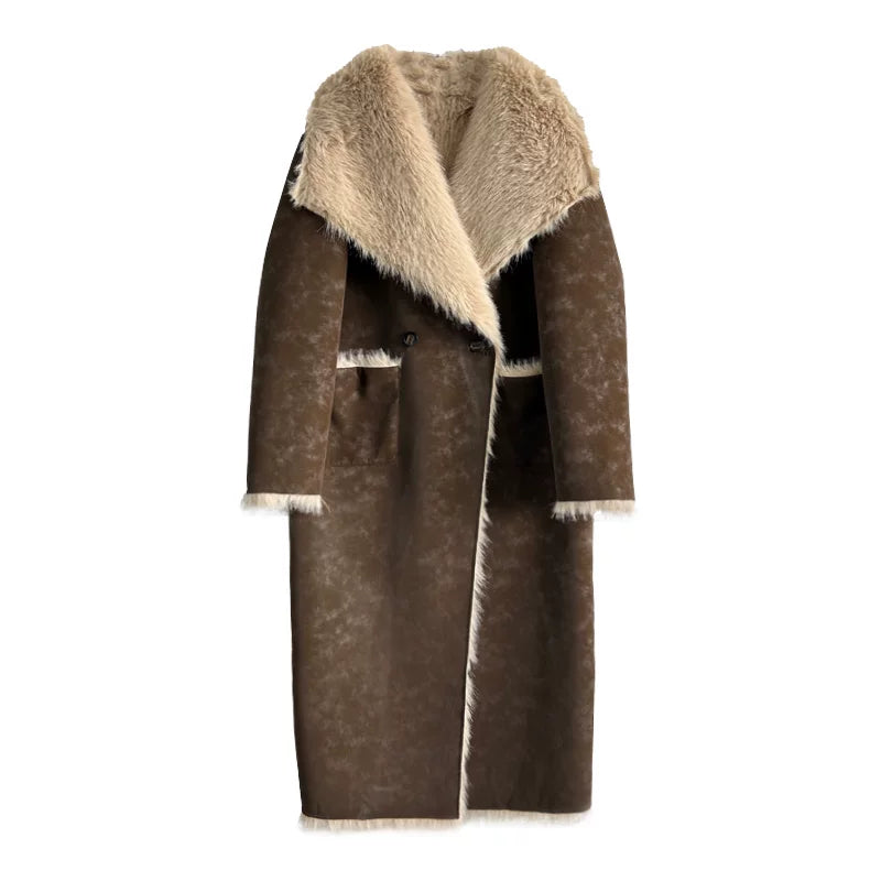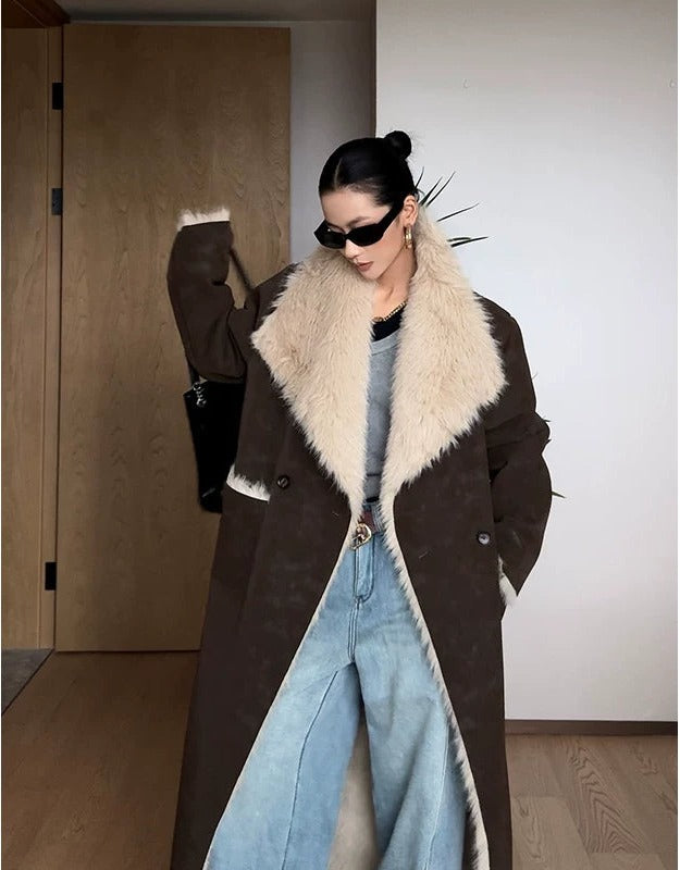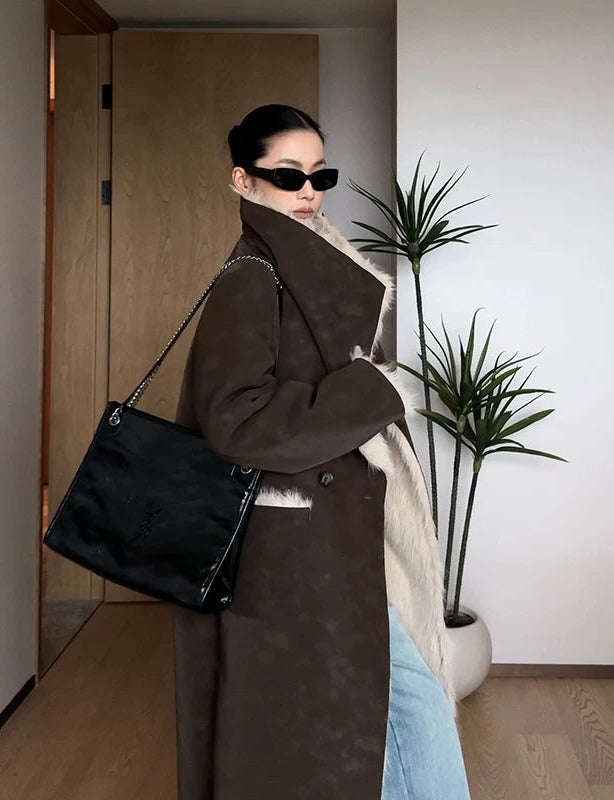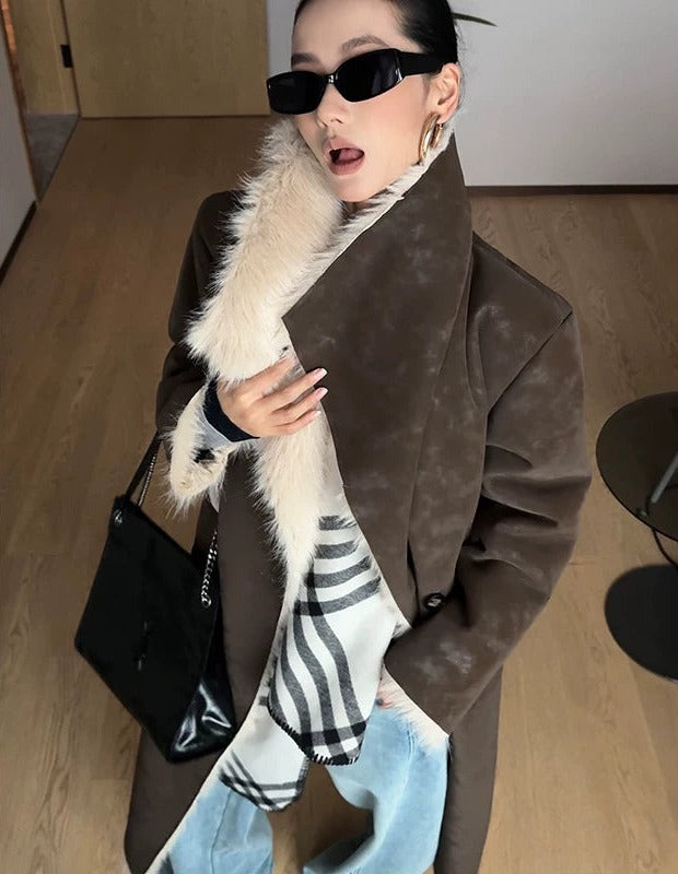 Textured Fur Reversible Long Sheath Coat