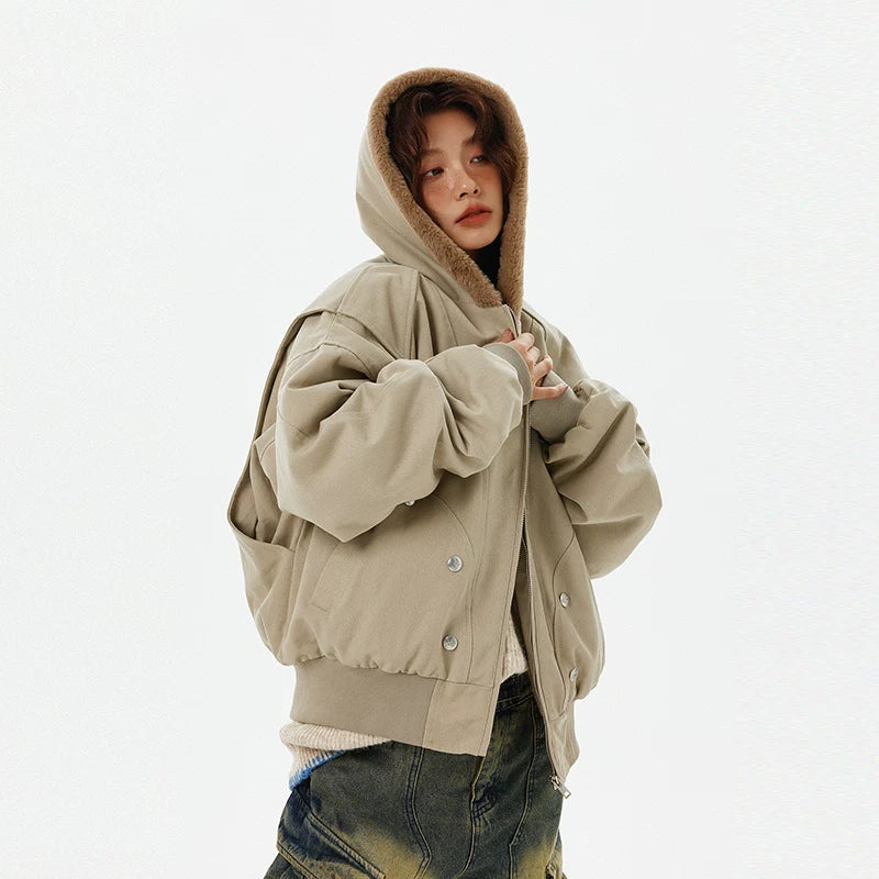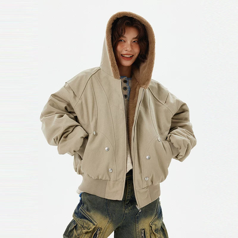 Chaqueta de algodón acolchada con capucha y piel sintética