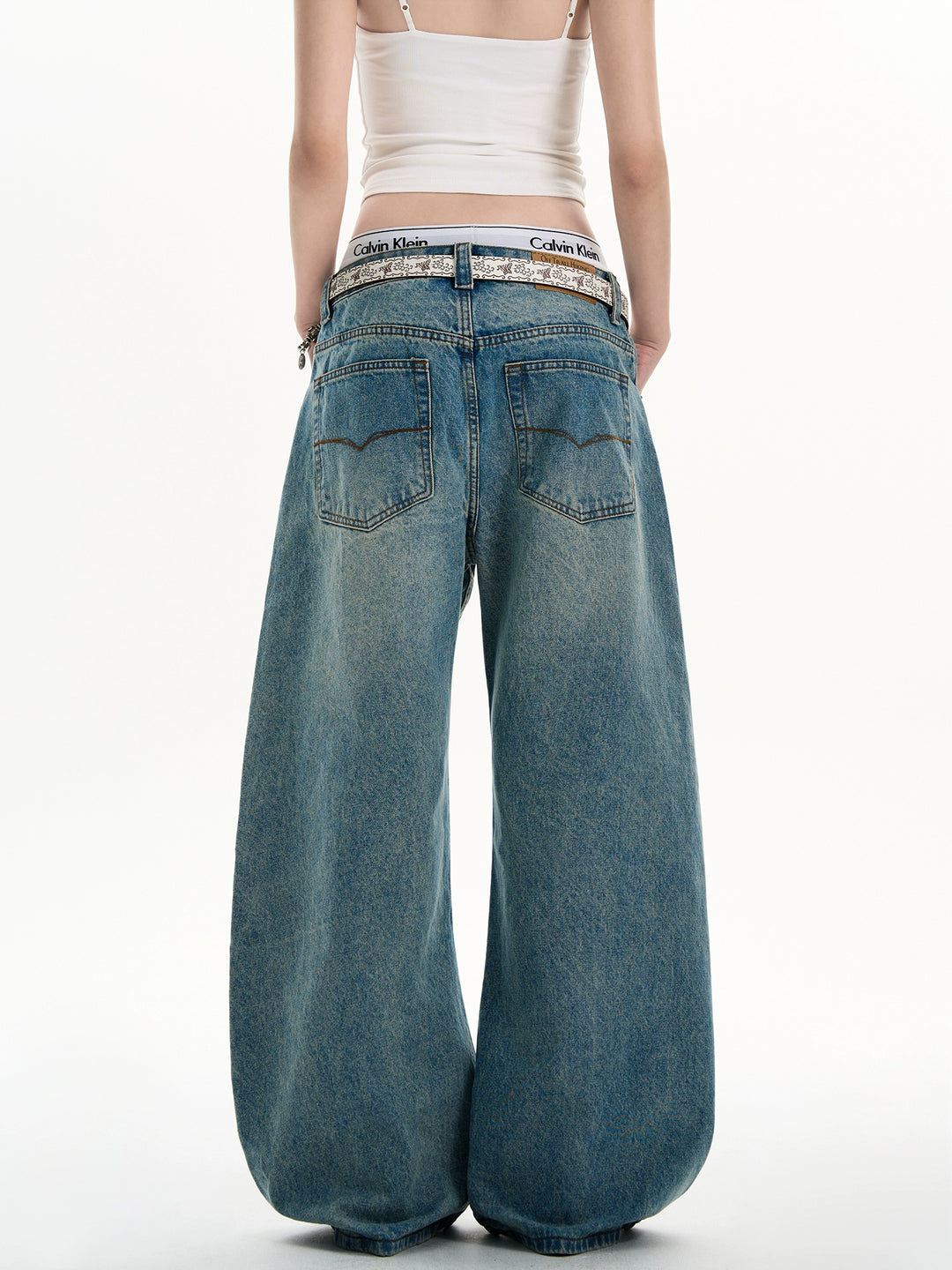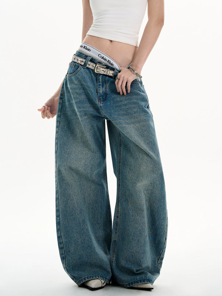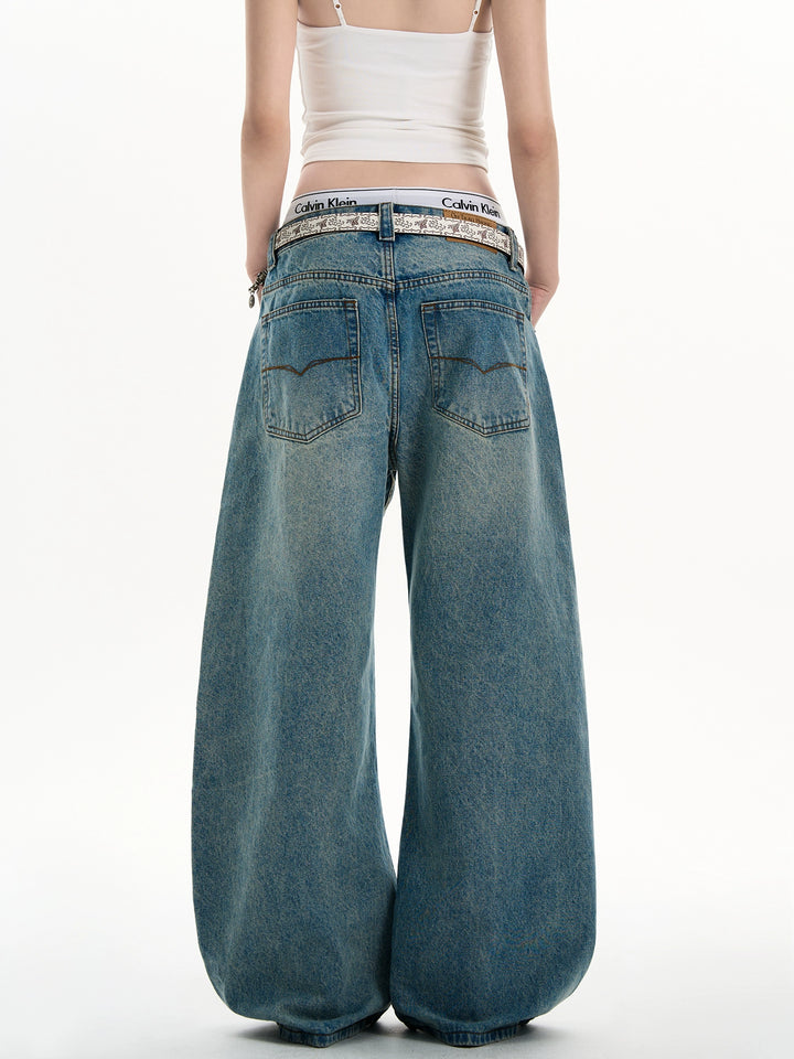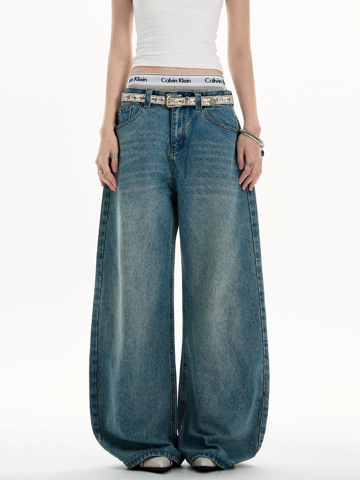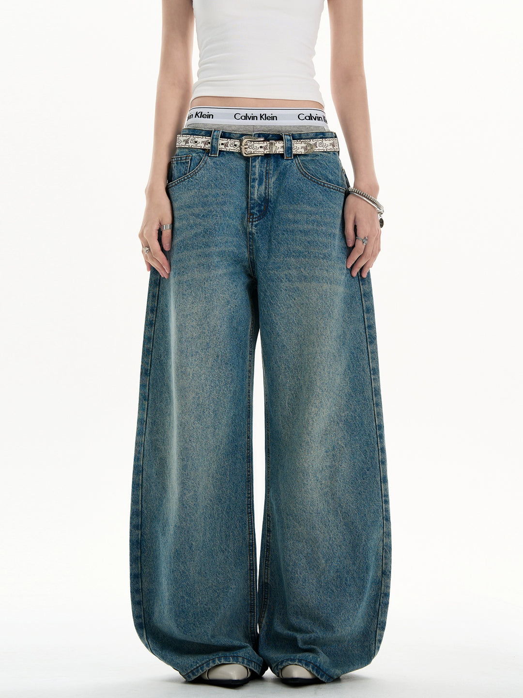 Pantalones de mezclilla casuales de pierna ancha y holgados