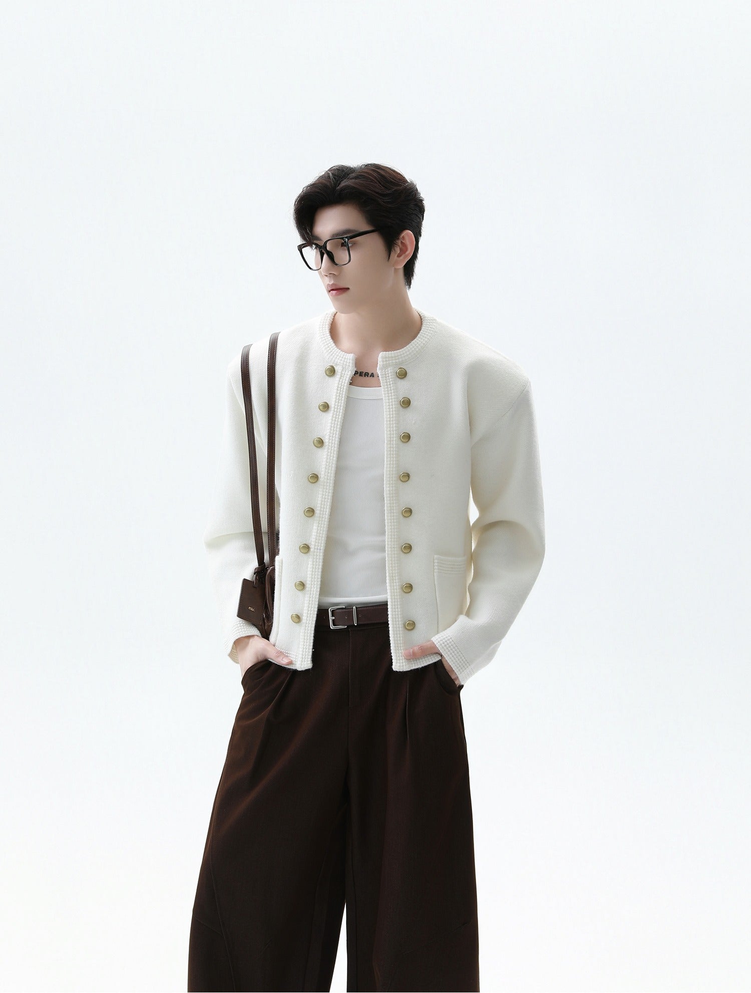 Cárdigan de punto de doble botonadura con cuello redondo