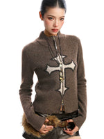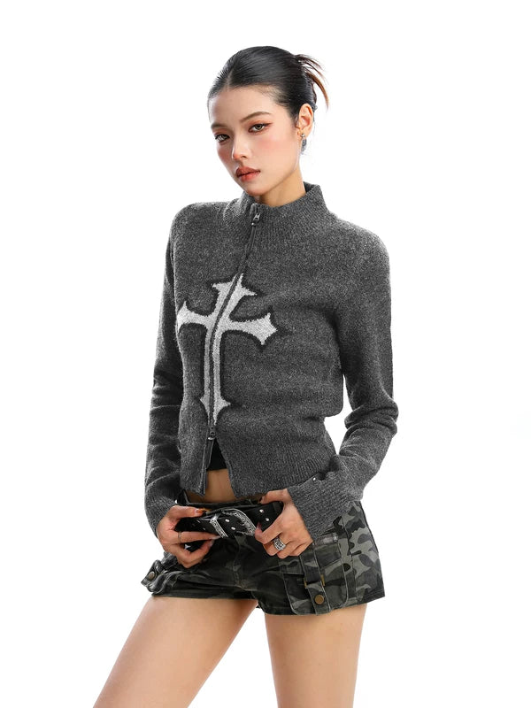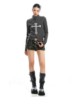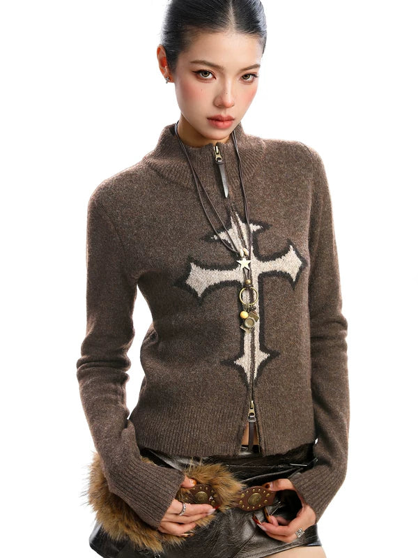 Suéter de punto con cuello alto y cremallera gráfica cruzada