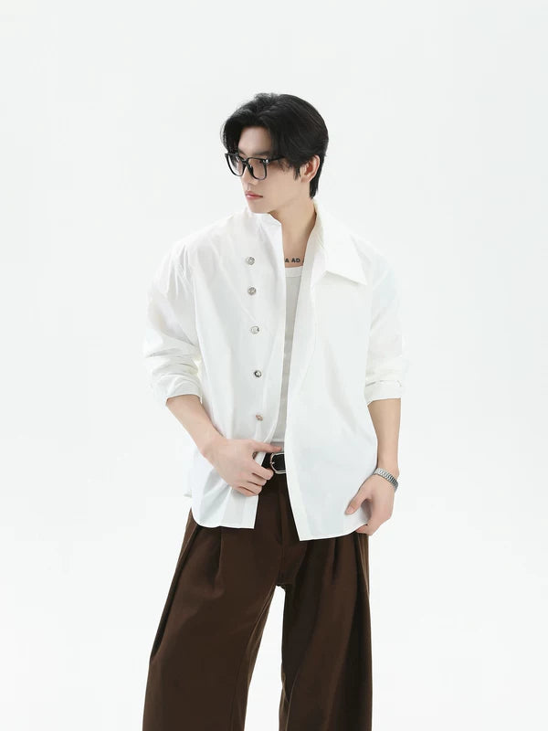 Camisa de manga larga de ajuste relajado con múltiples botones