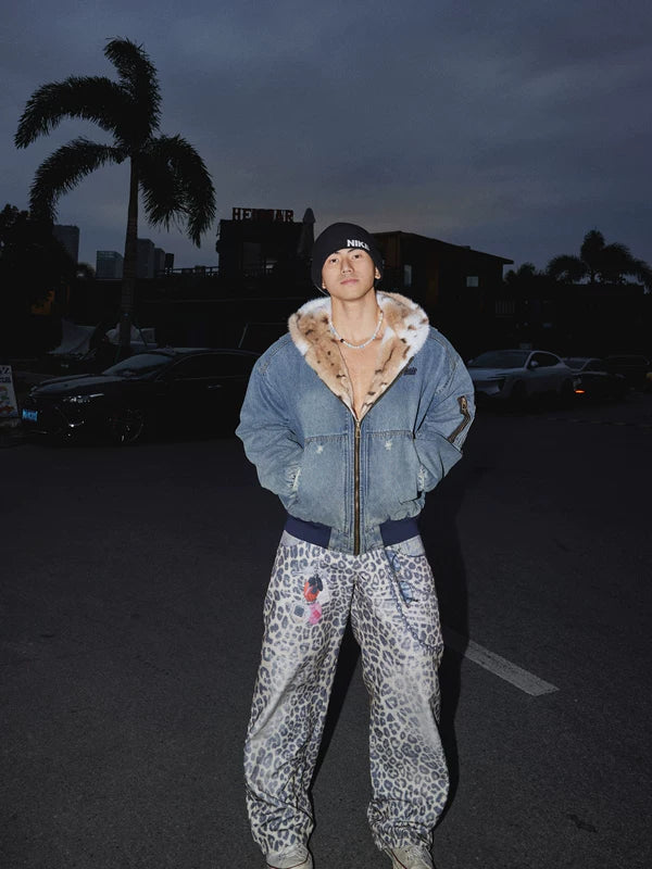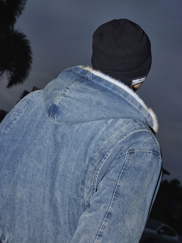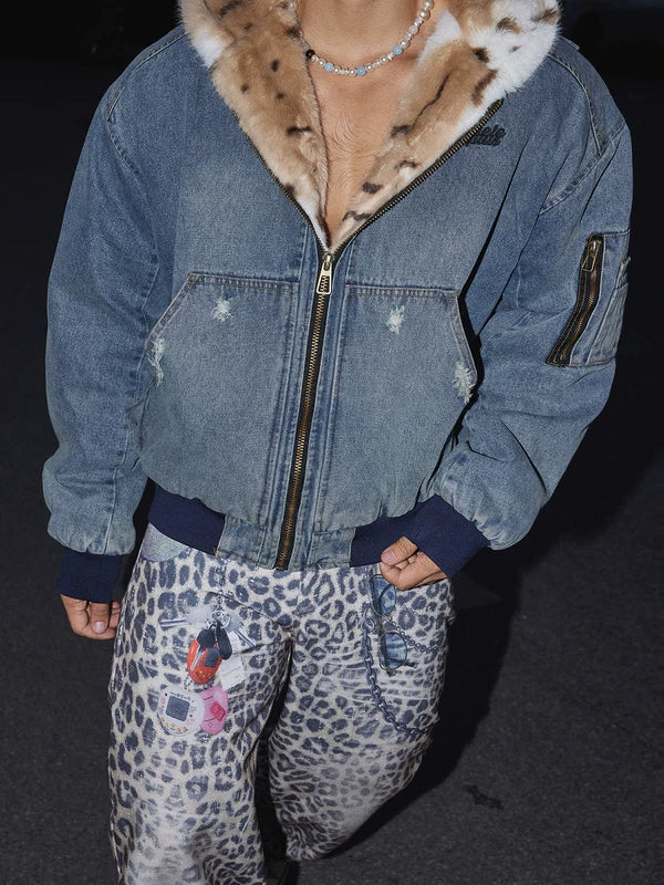 Chaqueta de mezclilla retro con cuello de piel