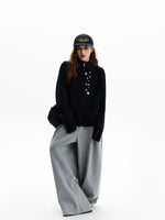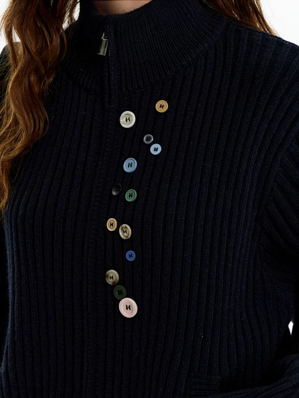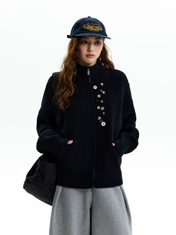 Sudadera de punto con cremallera y botones en la parte delantera con canalé