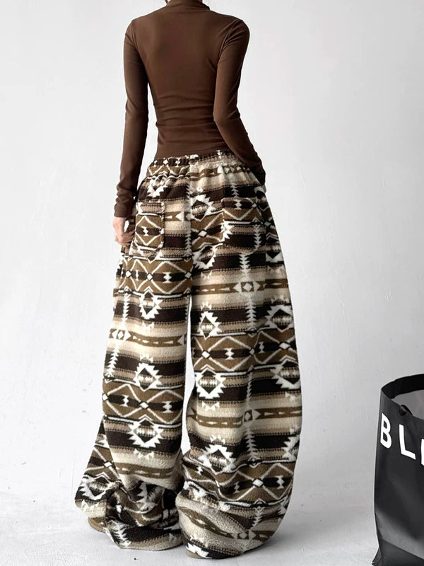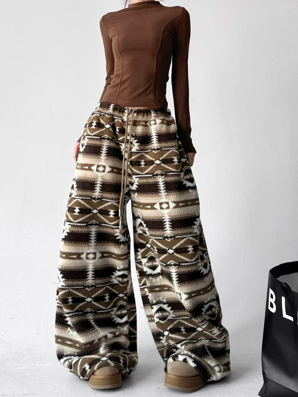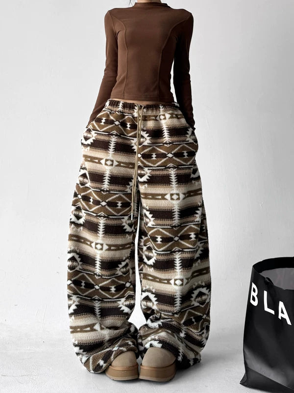Pantalones de lounge de pierna ancha de forro polar Fair Isle