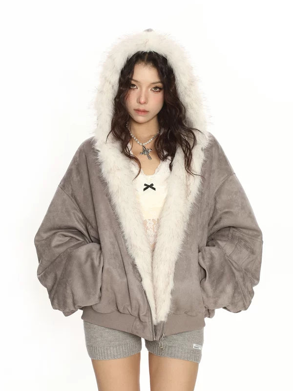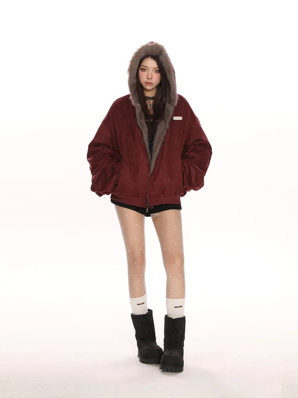 Chaqueta con capucha de piel sintética de ante reversible