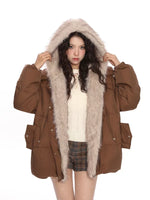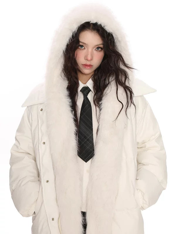 Chaqueta de plumas de invierno con capucha de piel desmontable
