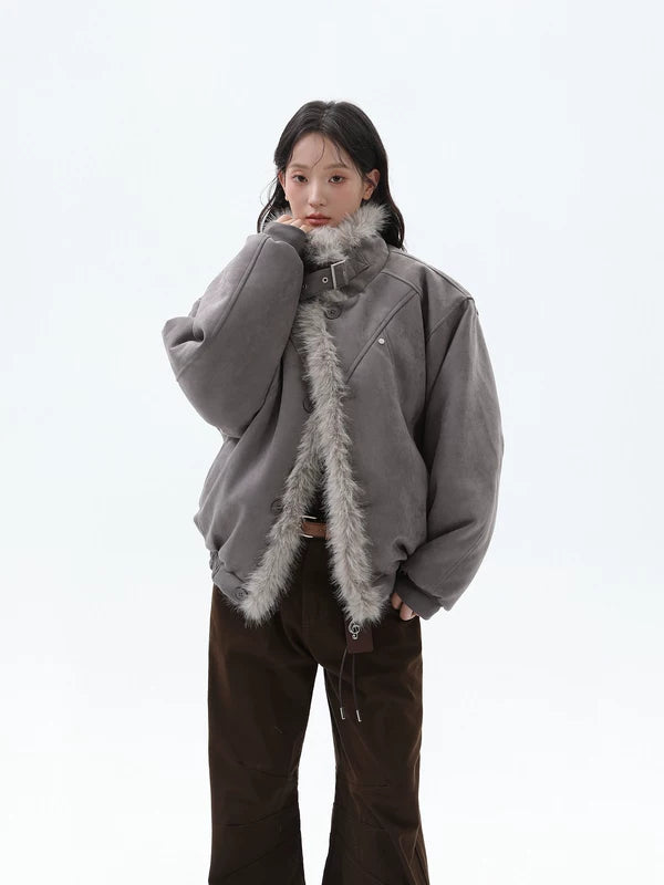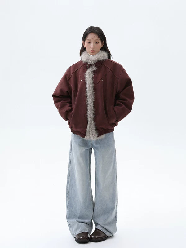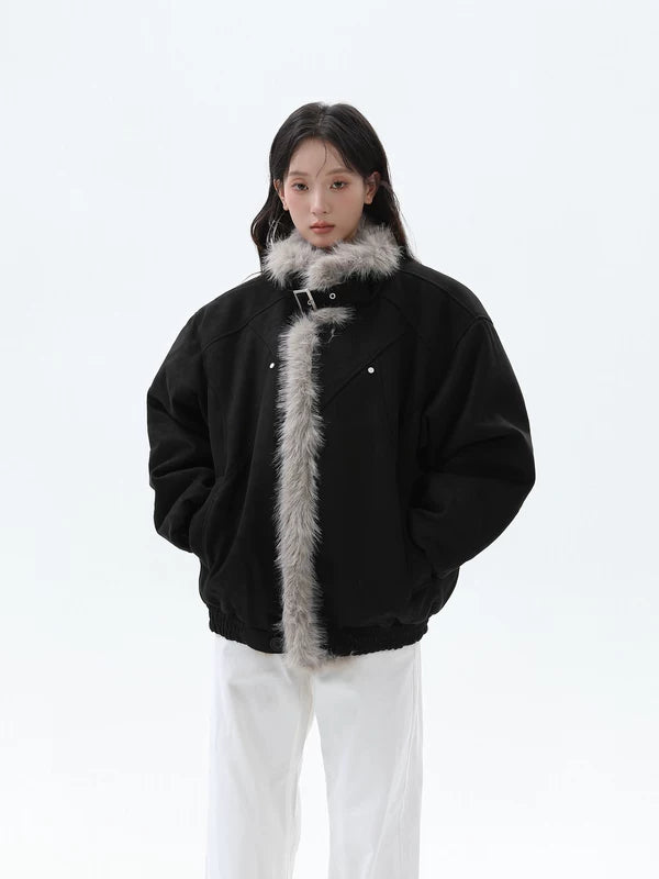 Chaqueta de invierno acolchada con cuello de piel sintética