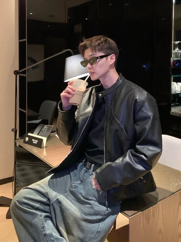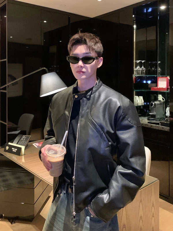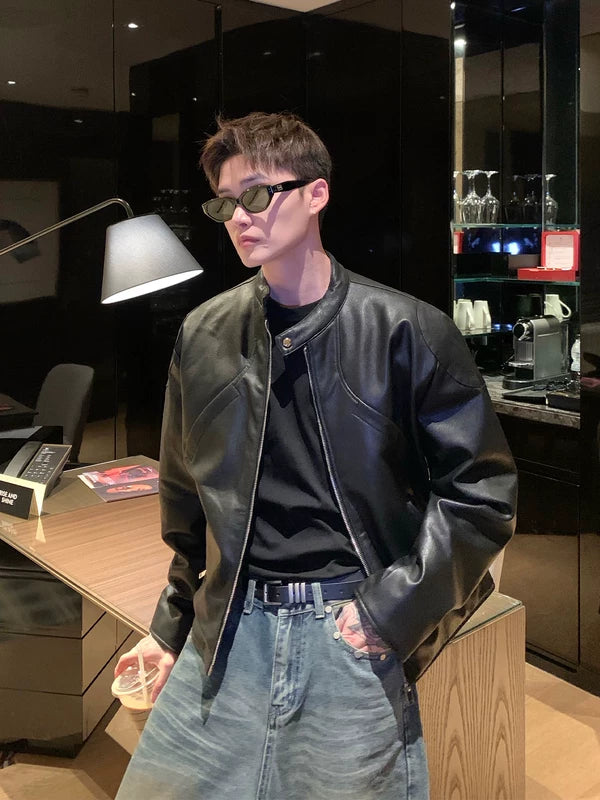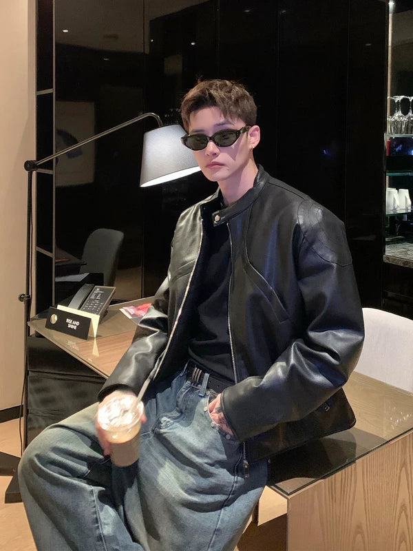 Chaqueta de motociclista de cuero PU con cuello retro